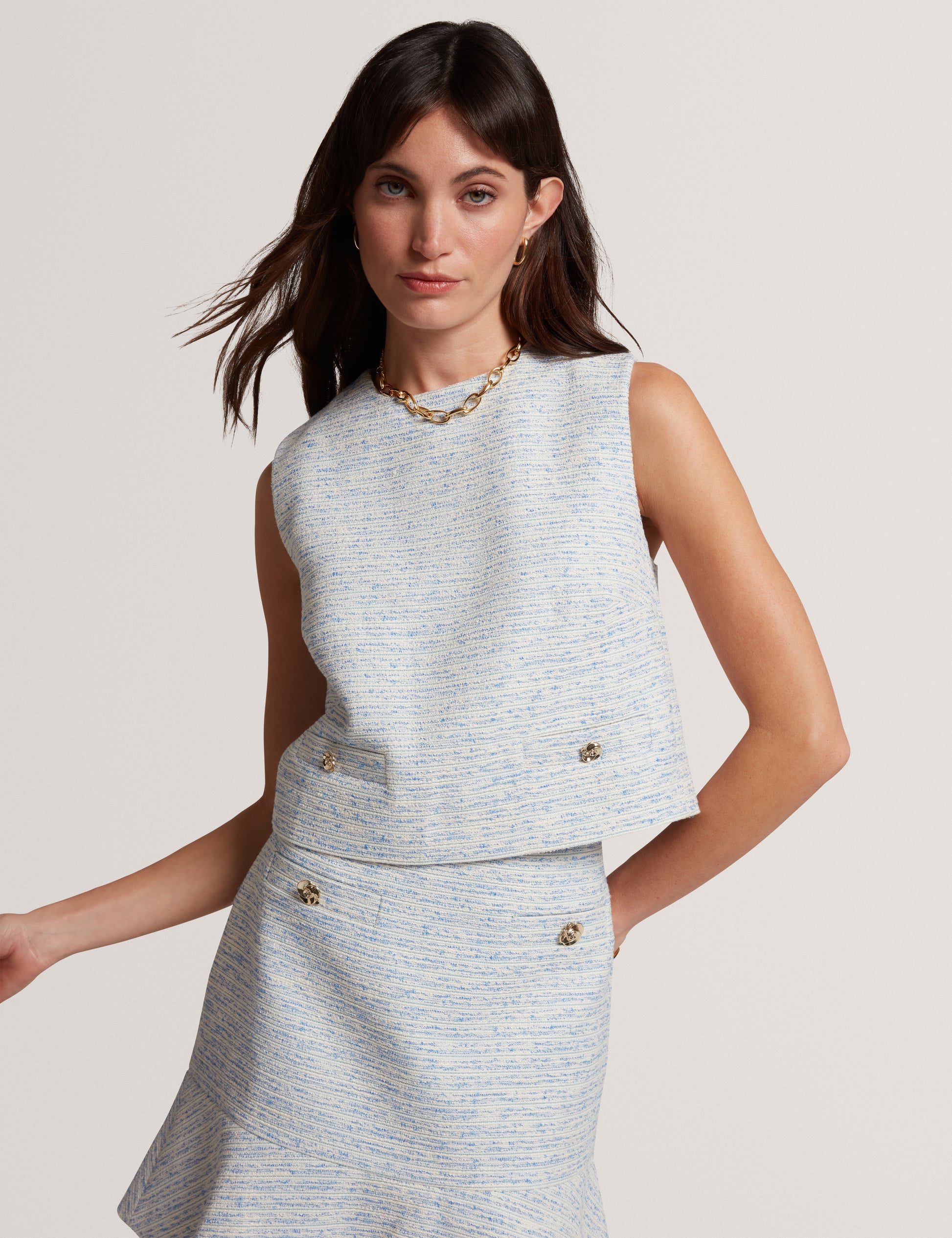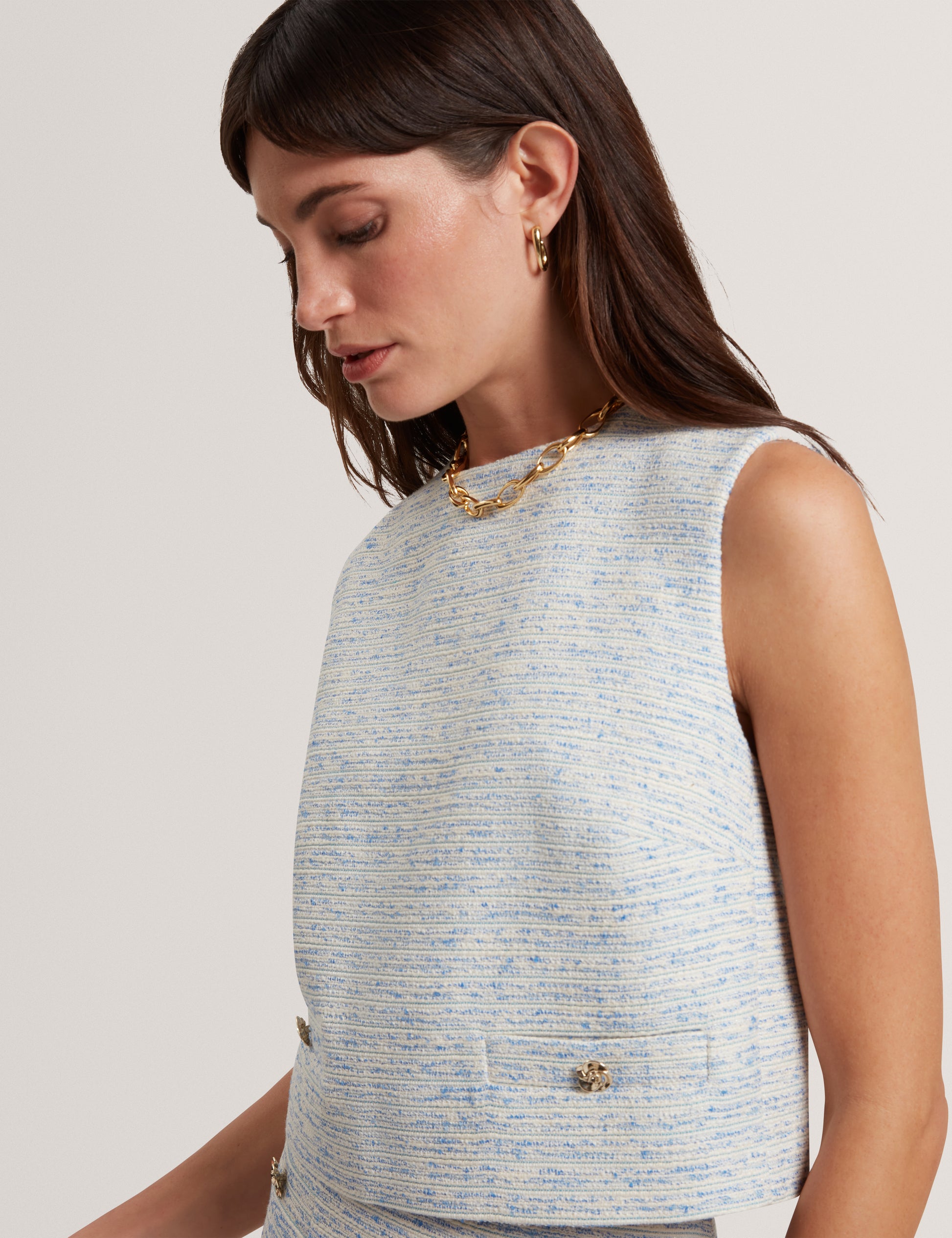 Sleeveless Boucle Tailored Top