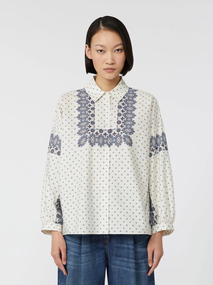 Crafted in pure cotton poplin with a relaxed silhouette, this ADDA shirt features side-slits, mother-of-pearl buttons and classic point collar—offering crisp comfort with effortless polish