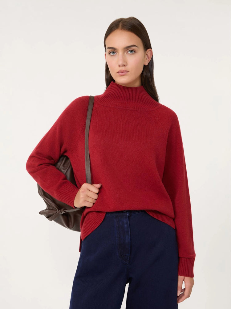 Woven in 100% pure cashmere, the ALCALI turtleneck in beige envelops you in luxurious softness—its high neck, relaxed raglan silhouette, and ribbed trims make it both a timeless classic and a cozy essential