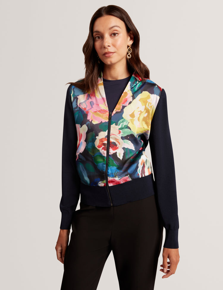AMBBUR - Printed Woven Front Zip Through Cardigan