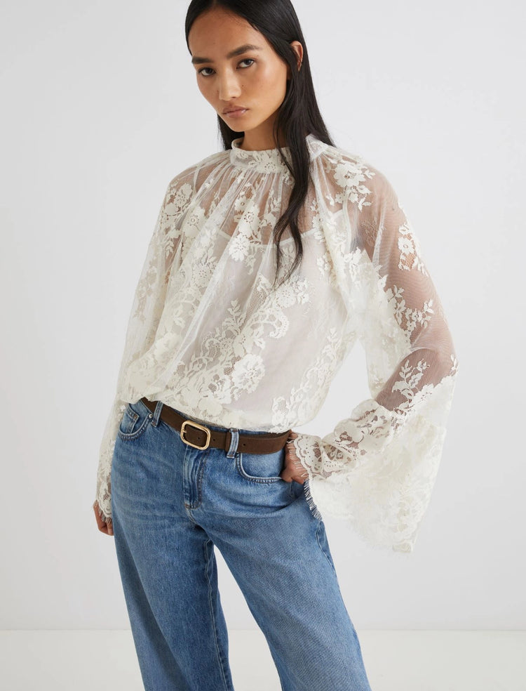 Seeking an everyday-perfect boho style? Every moment becomes special when you don this blouse, thanks to the Chantilly lace fabric and the loose-fitting bodice and sleeves. Opt for a subtly romantic corsair look with jeans.