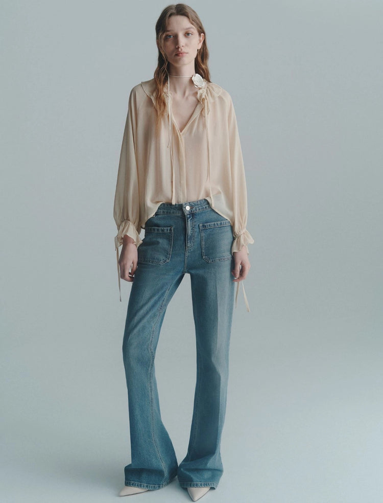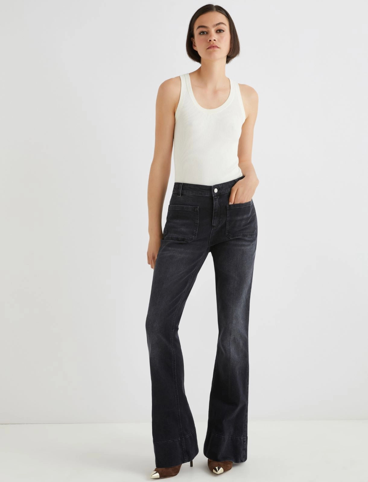 These bootcut jeans gently flare at the hem and slim the figure, whilst retaining a jeans-typical wild charm. Perfect with boots and romantic georgette blouses for a city and Western mix.