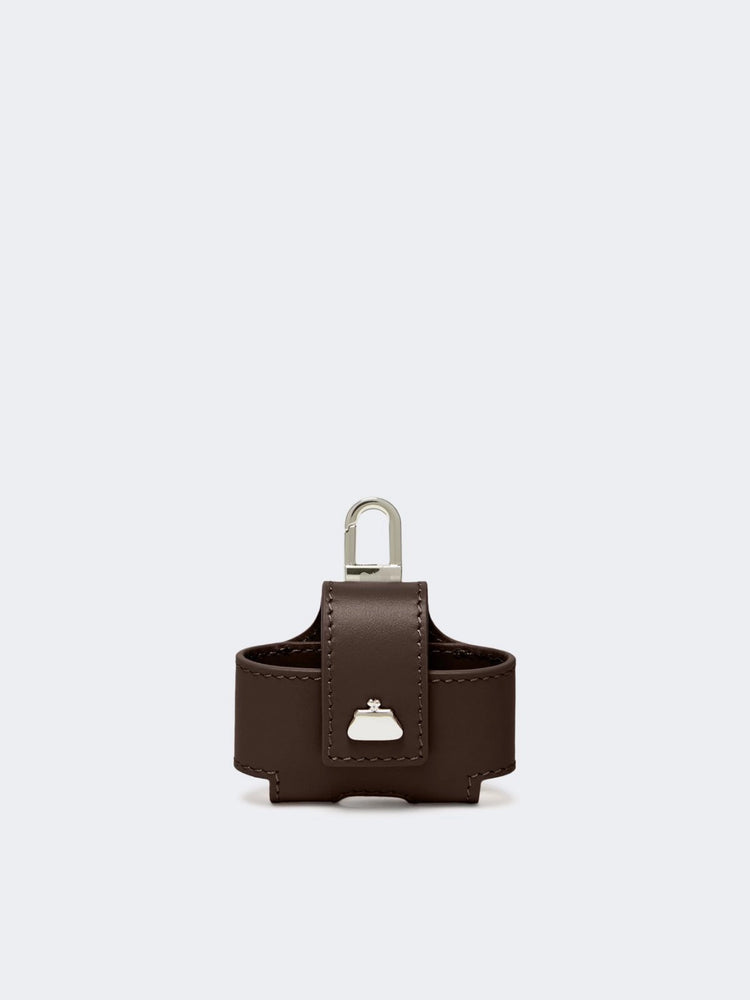 | Crafted from smooth calfskin leather with press-stud closure and a subtle Pasticcino-bag metal detail, the Brusson earphone pouch is designed to safeguard tech essentials while effortlessly clipping onto bags, wallets, or even belts for hands-free elegance |