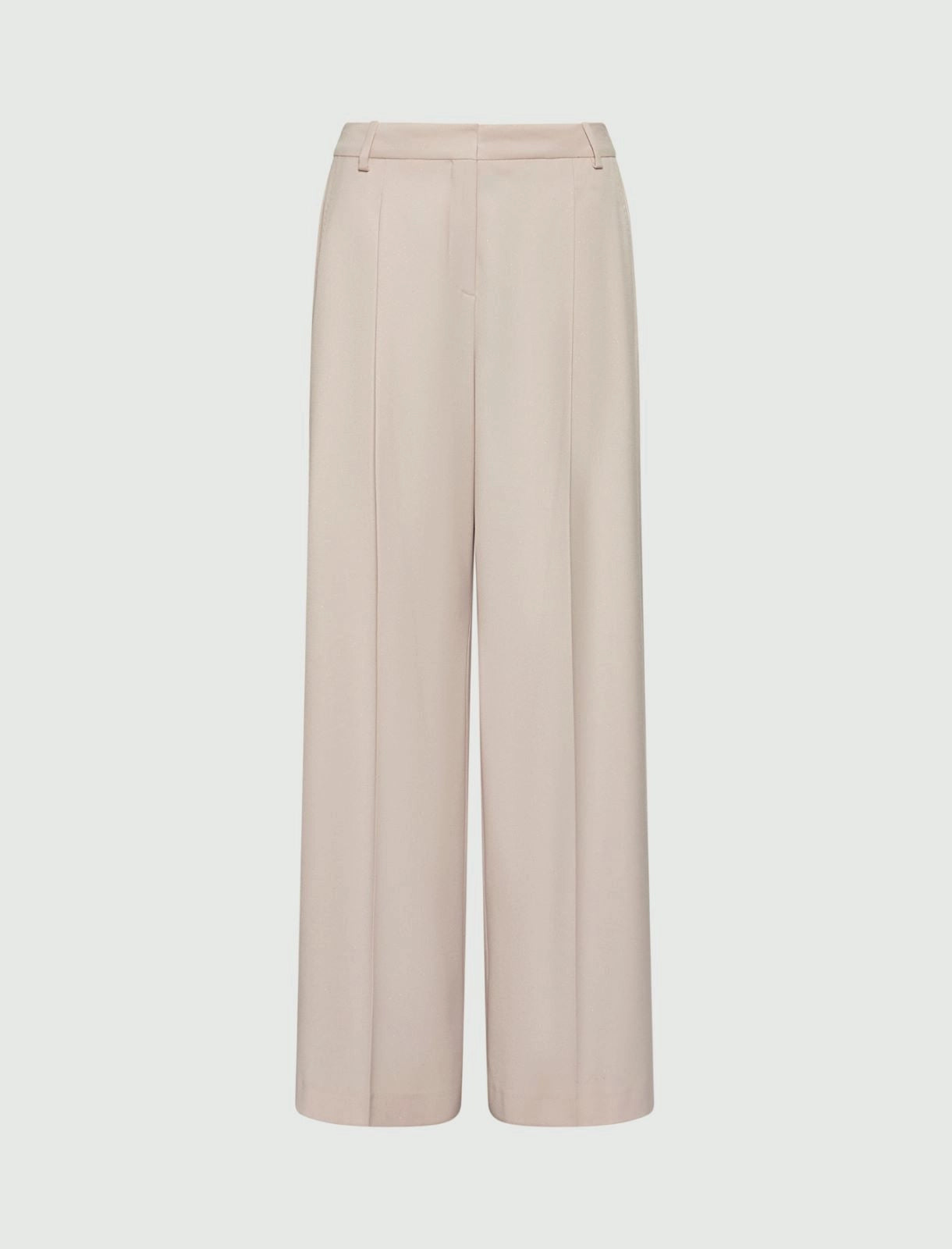 - Mid-rise waist with darts and pressed pleat detail