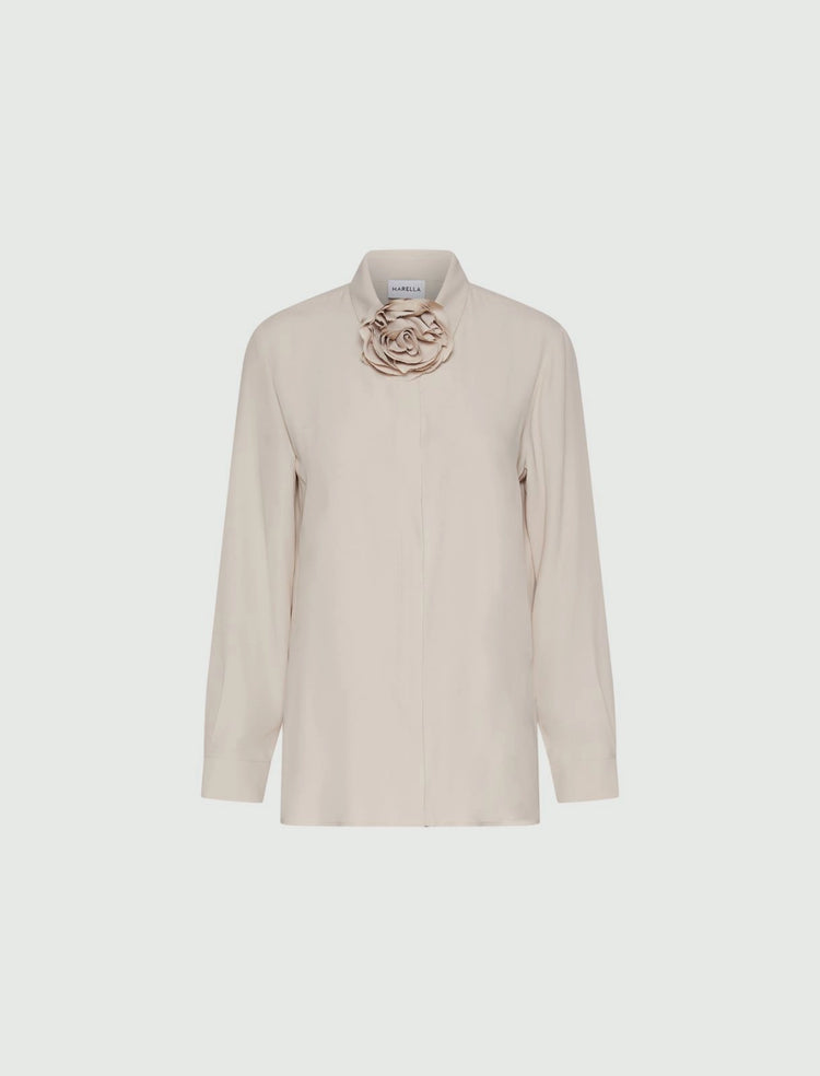 The fluidly elegant crepe de chine fabric transforms this shirt into an ever-sophisticated piece. Customise your styling with the fabric flower, which can easily be tied to the neck or waist.