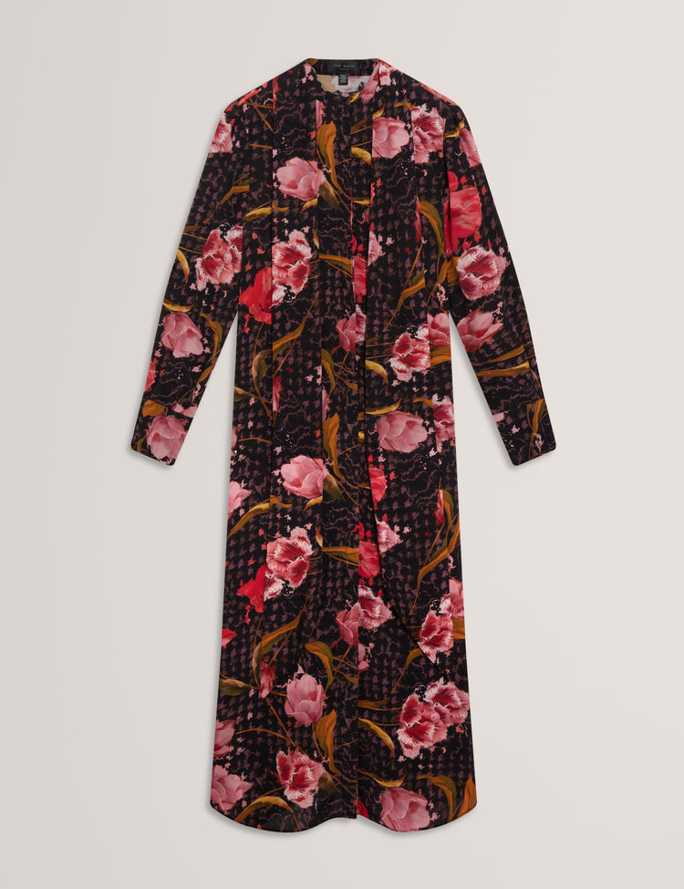 ELANN - Printed Tie Neck Midi Shirt Dress