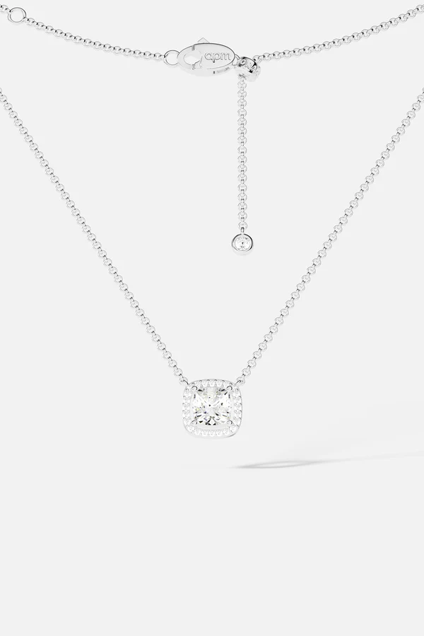 | This necklace is handcrafted from sterling silver and microset with white cubic zirconia. 2-year worldwide warranty Material: Sterling silver, white cubic zirconia All our products are handcrafted and microset by hand in our ateliers Color: Silver Total chain length: 45 cm max The length of the chain can be adjusted with sliding clasp Pendant size: 1 cm |