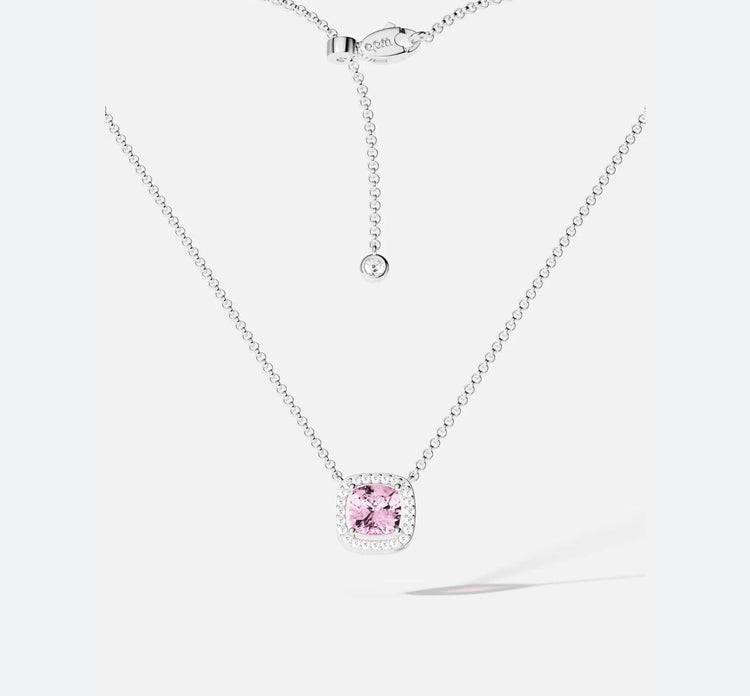 | This necklace is handcrafted from sterling silver and microset with pink and white cubic zirconia. 2-year worldwide warranty Material: Sterling silver, white cubic zirconia All our products are handcrafted and microset by hand in our ateliers Color: Silver Total chain length: 45 cm max The length of the chain can be adjusted with sliding clasp Pendant size: 1 cm |