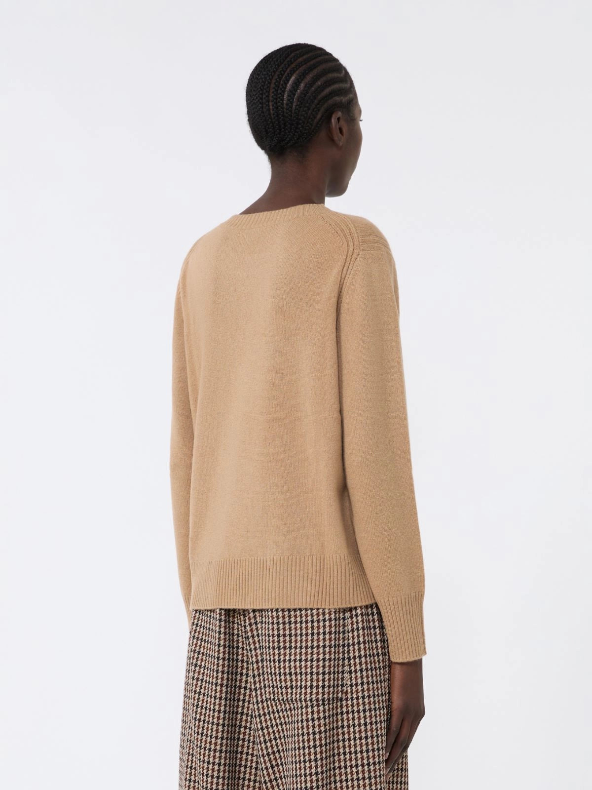 Slip into the “Fionda” cashmere jumper in camel – crafted from 100% pure cashmere for unparalleled softness, with a relaxed crew-neck silhouette that effortlessly transitions from chic everyday wear to luxe lounge