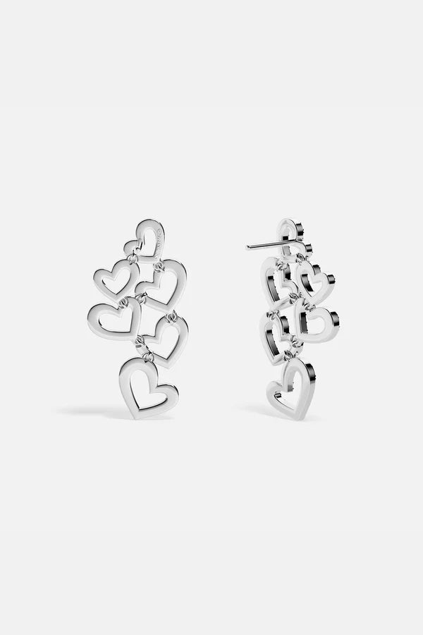 Pavé hearts in different sizes create a layered effect that sways with a romantic allure. The perfect touch of elegance and modernity.