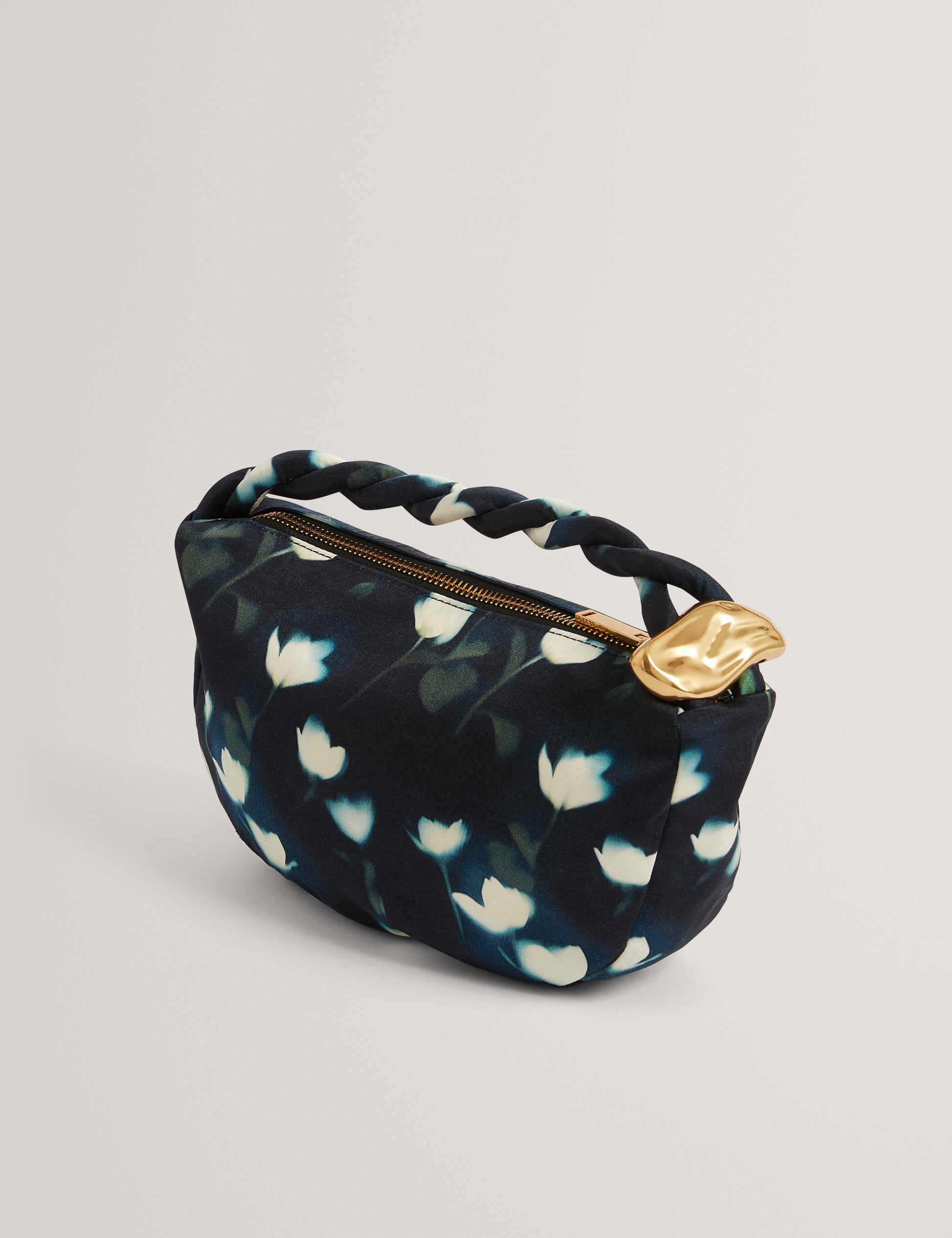 Satin Statement Hardware Printed Hobo Bag