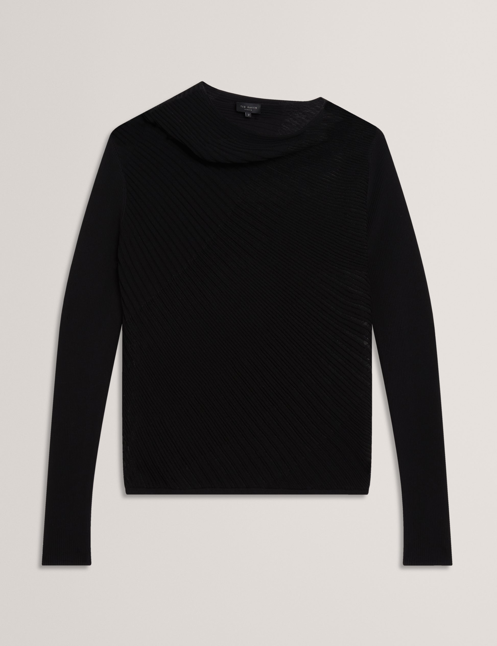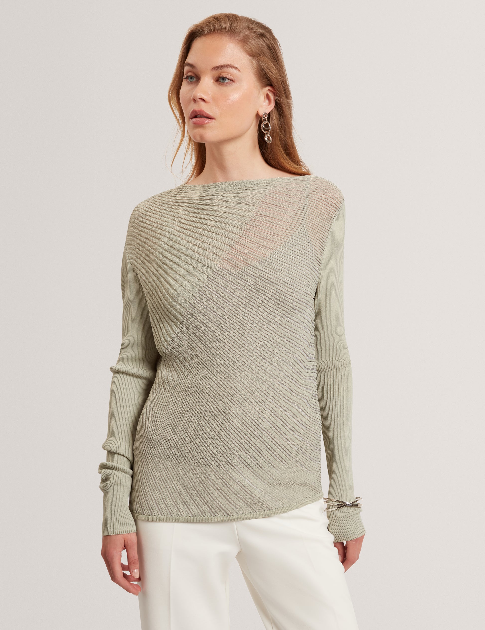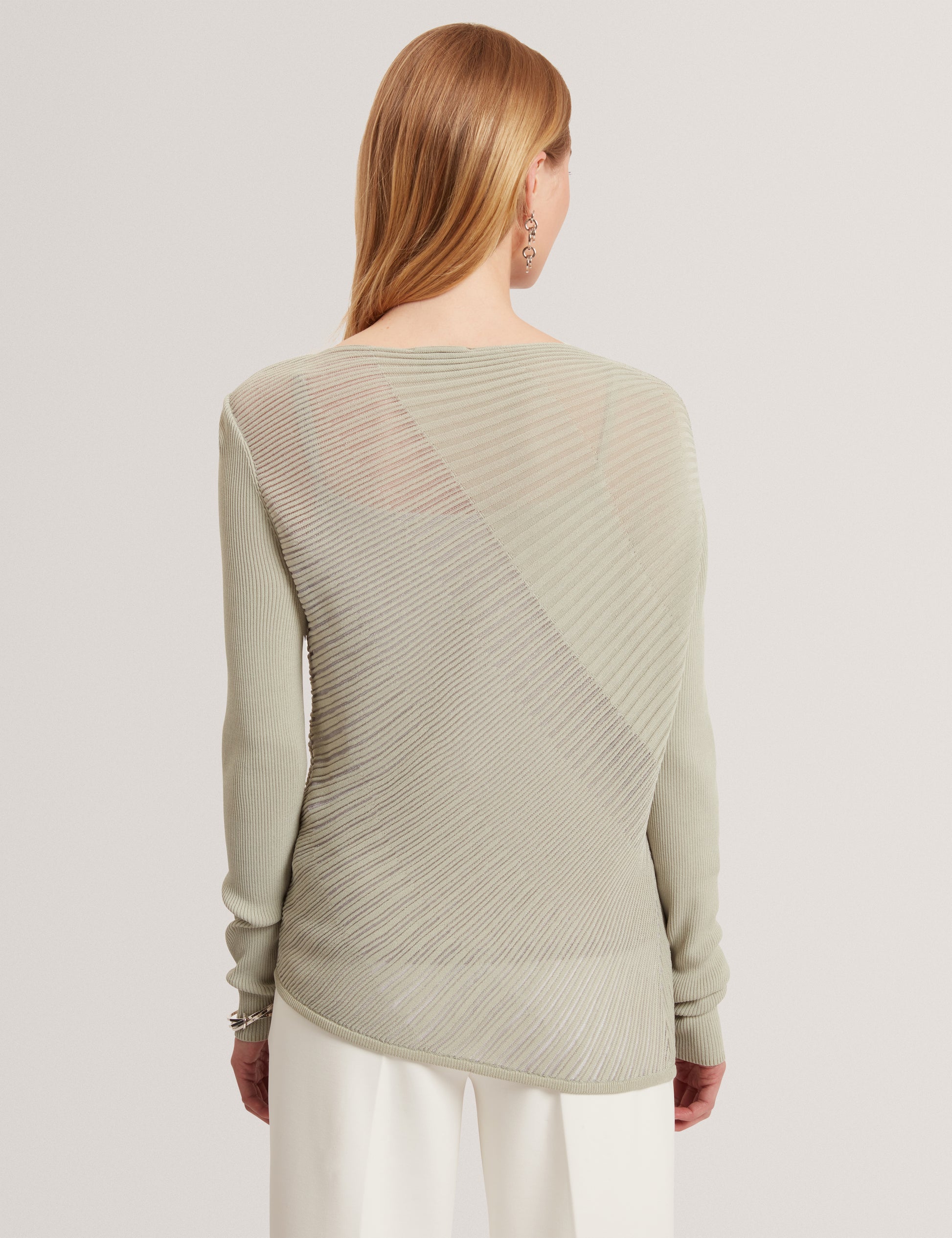 CEYLOAA - Long Sleeve Sheer Detail Knit Top
