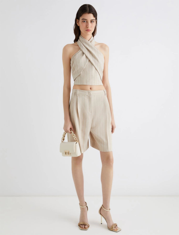 The season's new iconic top boasts a cropped cut, off-the-shoulder design and sensual criss-cross detail on the front. Urban elegance and sensuality perfectly combine.