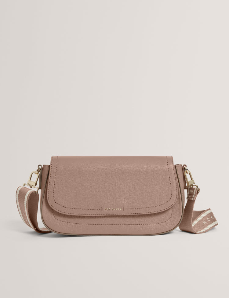 Webbing Leather Flapover Crossbody Bag