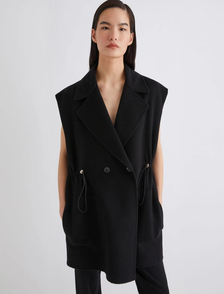 The subtle denim effect transforms this short jacket into a true seasonal all-rounder: wear it with cigarette trousers and a light blouse for a contemporary business look. Coat-like versatility with a trendy sleeveless cut: the new gilet is stylishly versatile; wear it over blouses and everyday sweaters. Super warm and ultra-stylish.