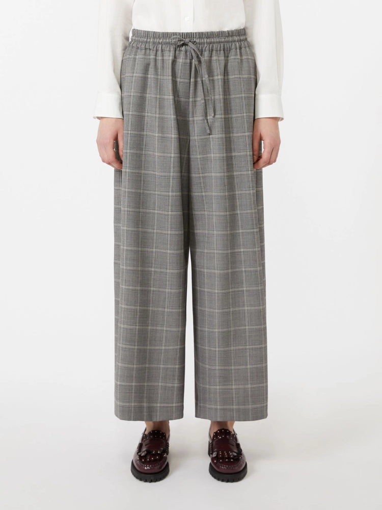 Crafted in tech wool twill with stretch, these glasses-sharp LUIGI trousers marry structured tailoring with comfort—wide leg cut, elastic drawstring waist and side pockets make them an elevated go-to for dressy fluidity