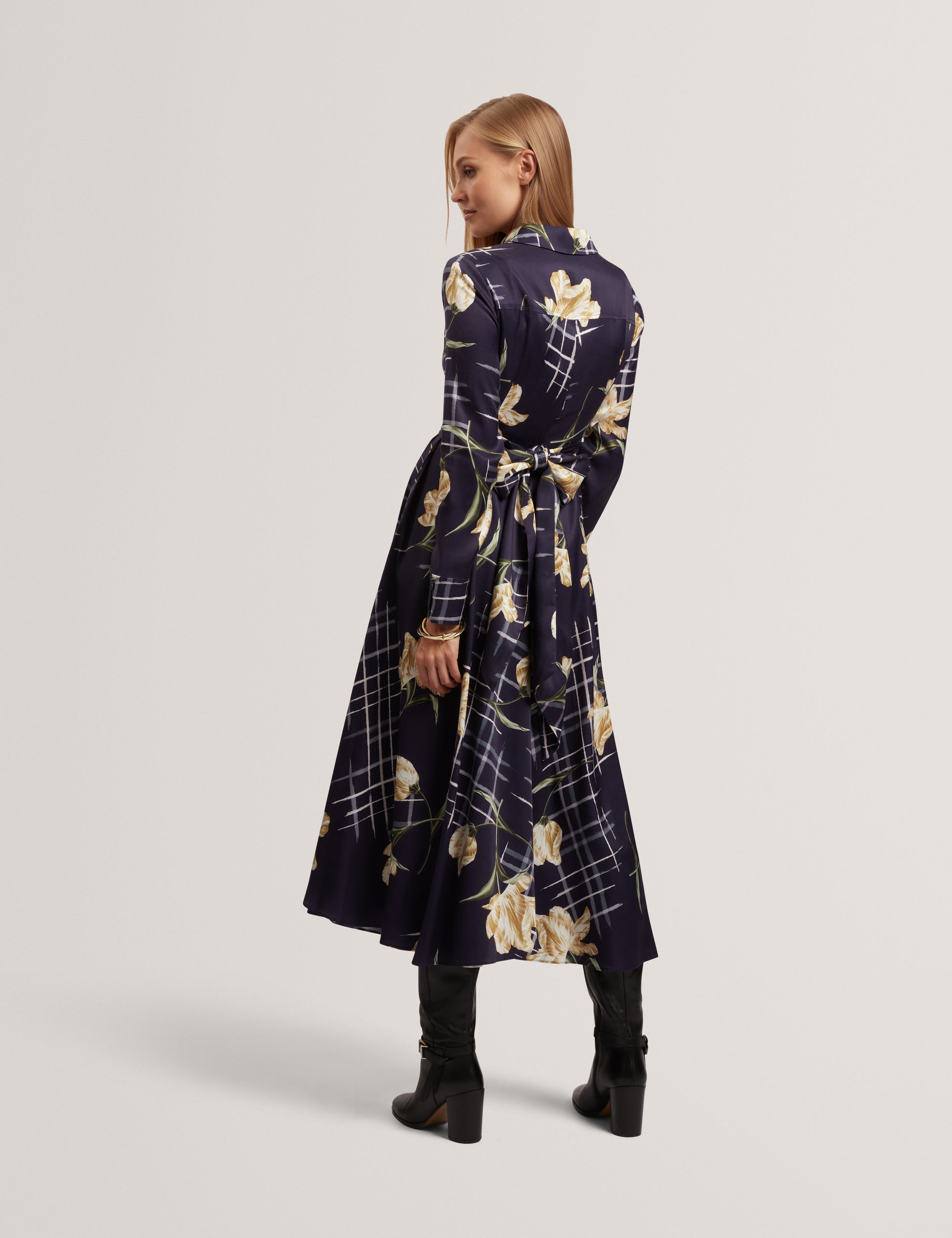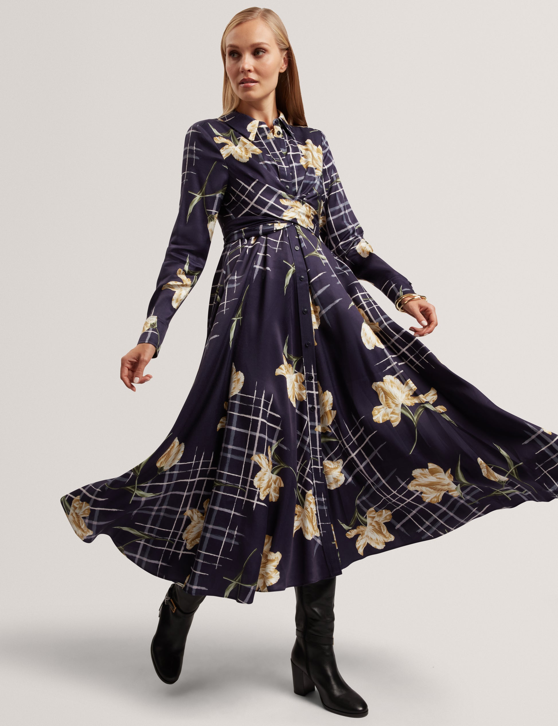 Printed Wrap Detail Midi Dress