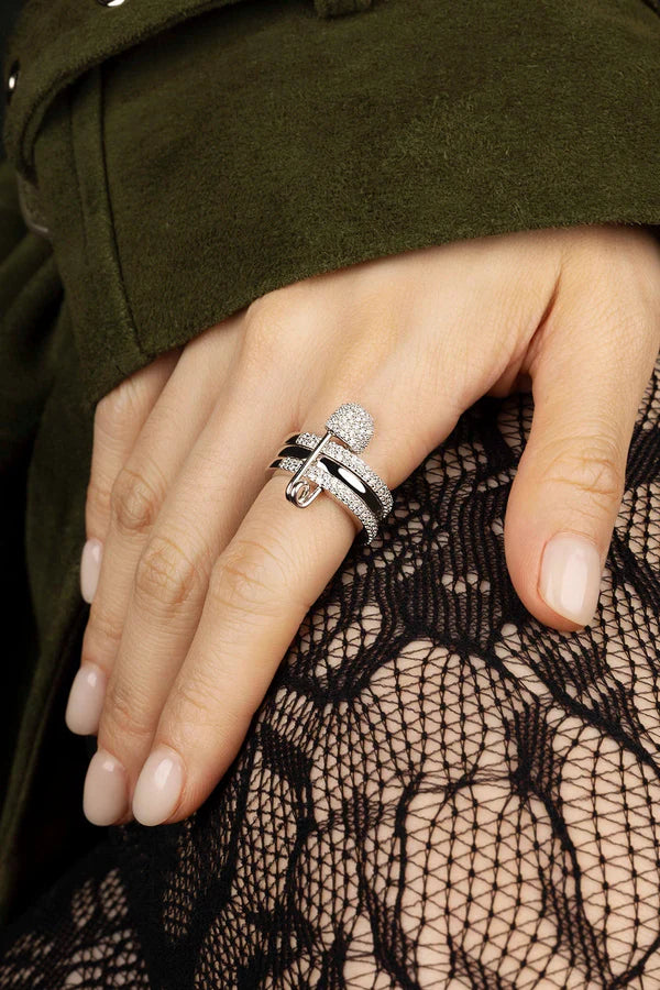morse code - Love, Smile, Bonheur Triple Hoop Safety Pin Ring