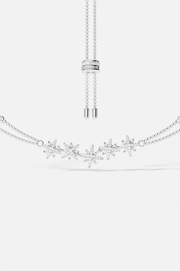 | This necklace is handcrafted from sterling silver and micropaved with white cubic zirconia. Material: Sterling silver Stones: Micropaved white cubic zirconia Color: Silver Total chain length: 42 - 65 cm max The length of the chain can be adjusted Closure: Slider clasp All our products are handcrafted. |
