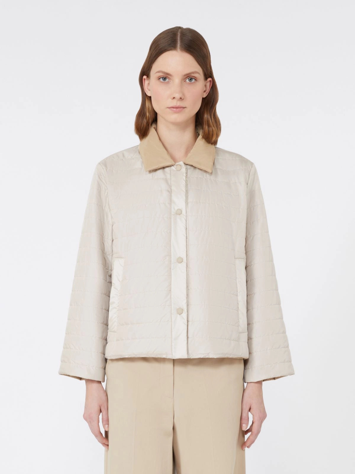 Made from water-repellent taffeta with Luxepad Ultra Fine insulation and camel-wool/silk quilting, the MIMMA reversible jacket fuses protection, warmth and soft beige style in one versatile piece. |