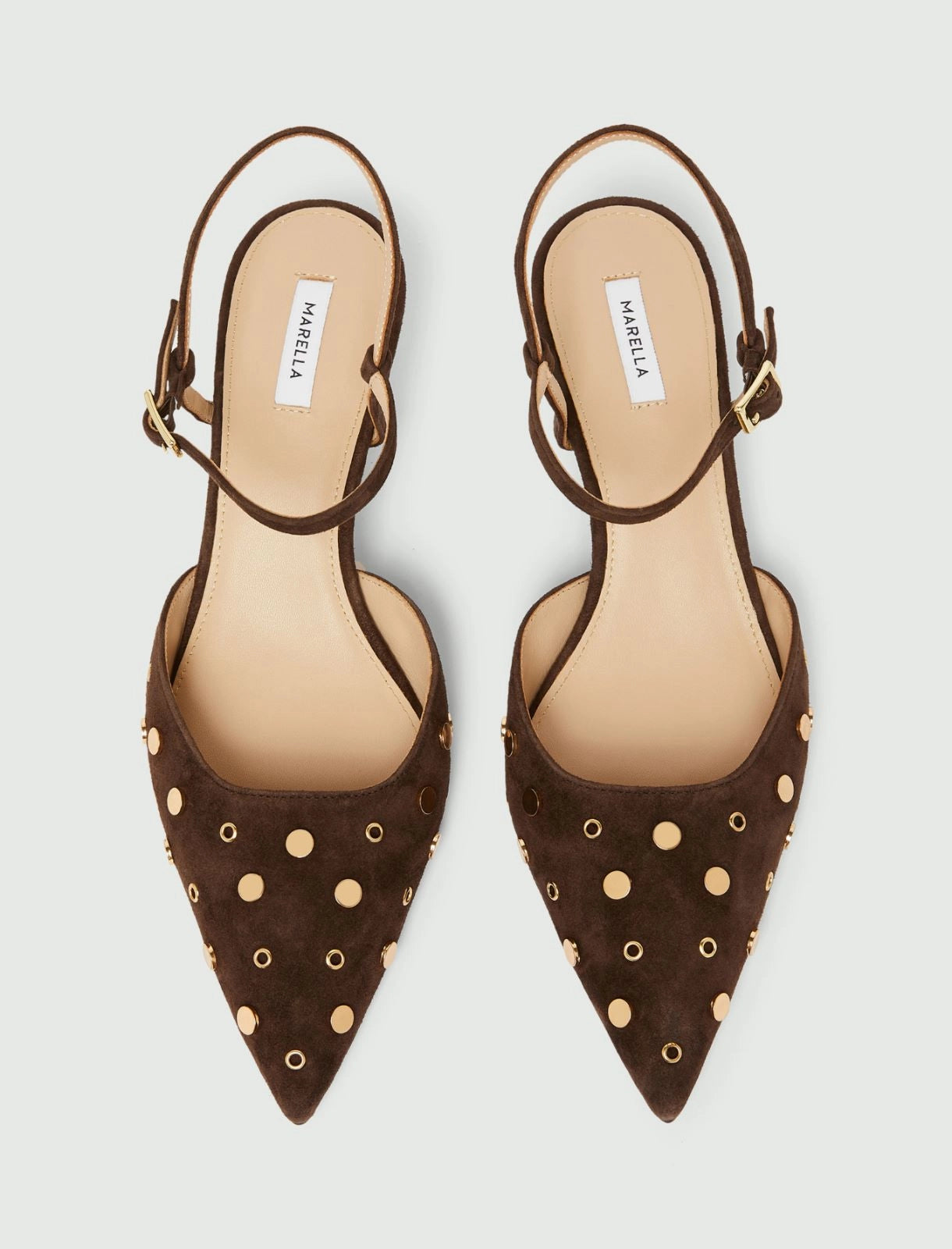 - The dark brown variant boasts golden-finish stud detail. The black version is entirely crafted from suede