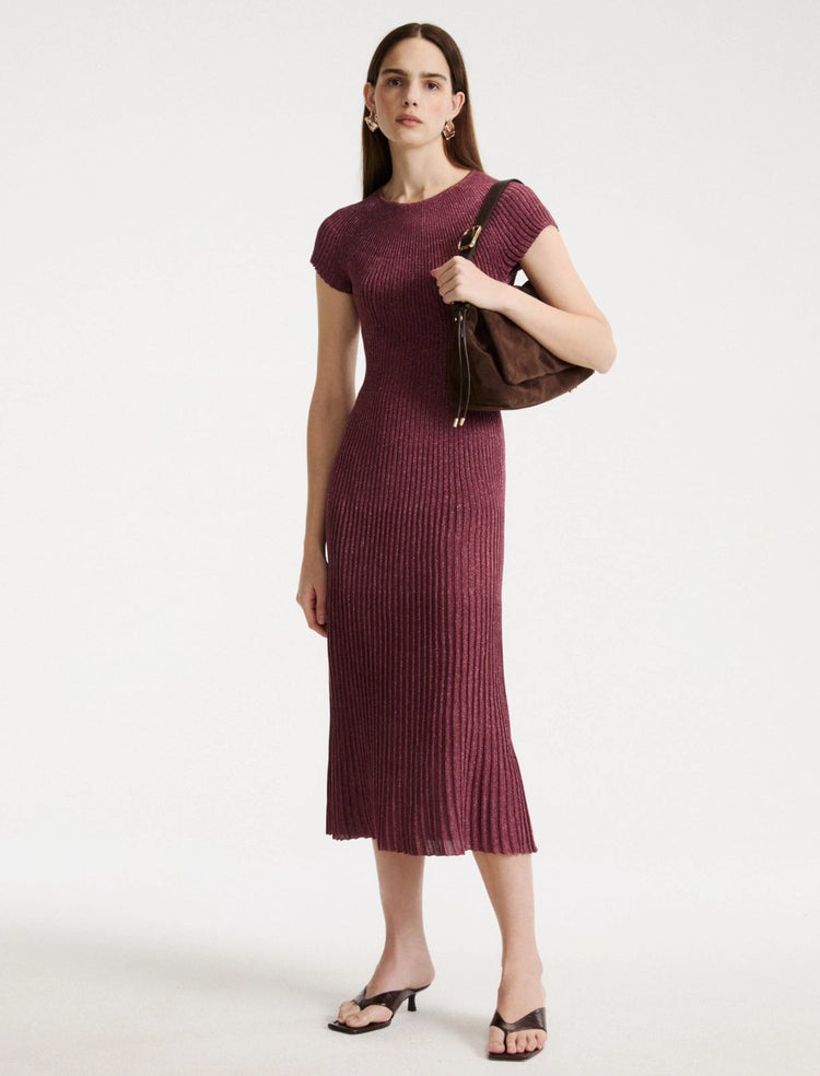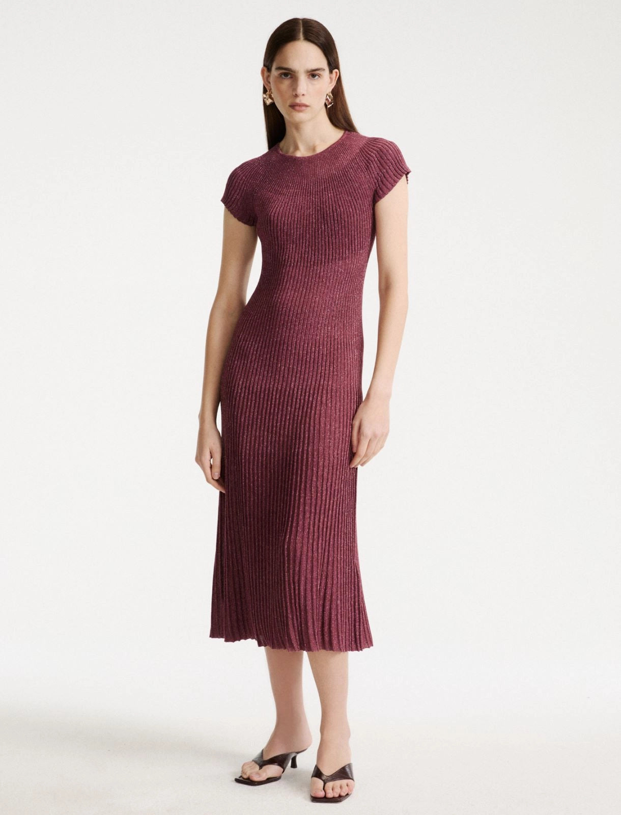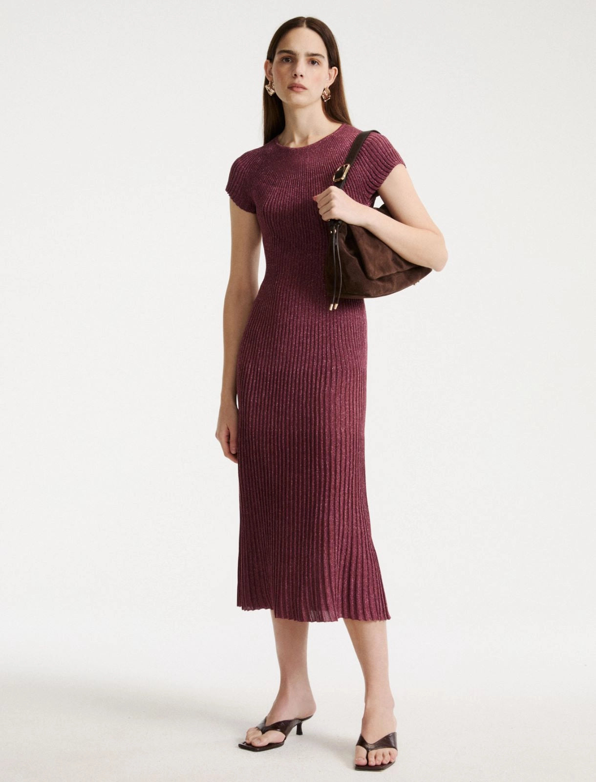 - Dress in viscose-blend knit fabric embellished with a lurex thread