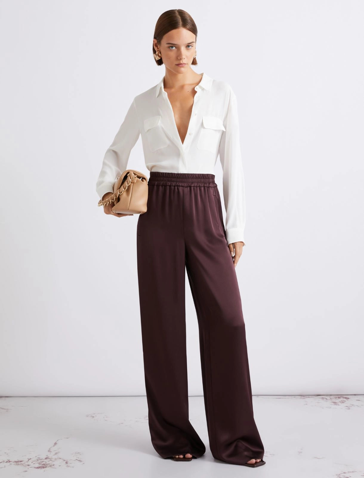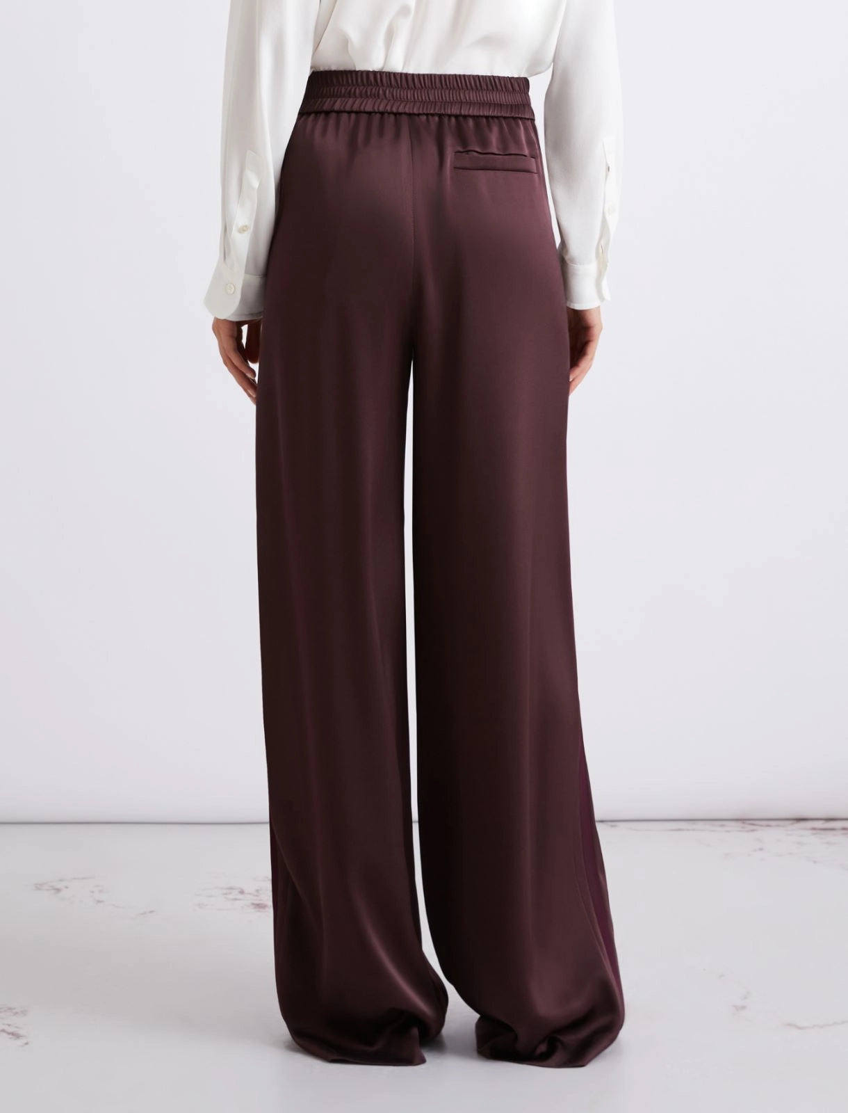 Satin elasticated-waist trousers