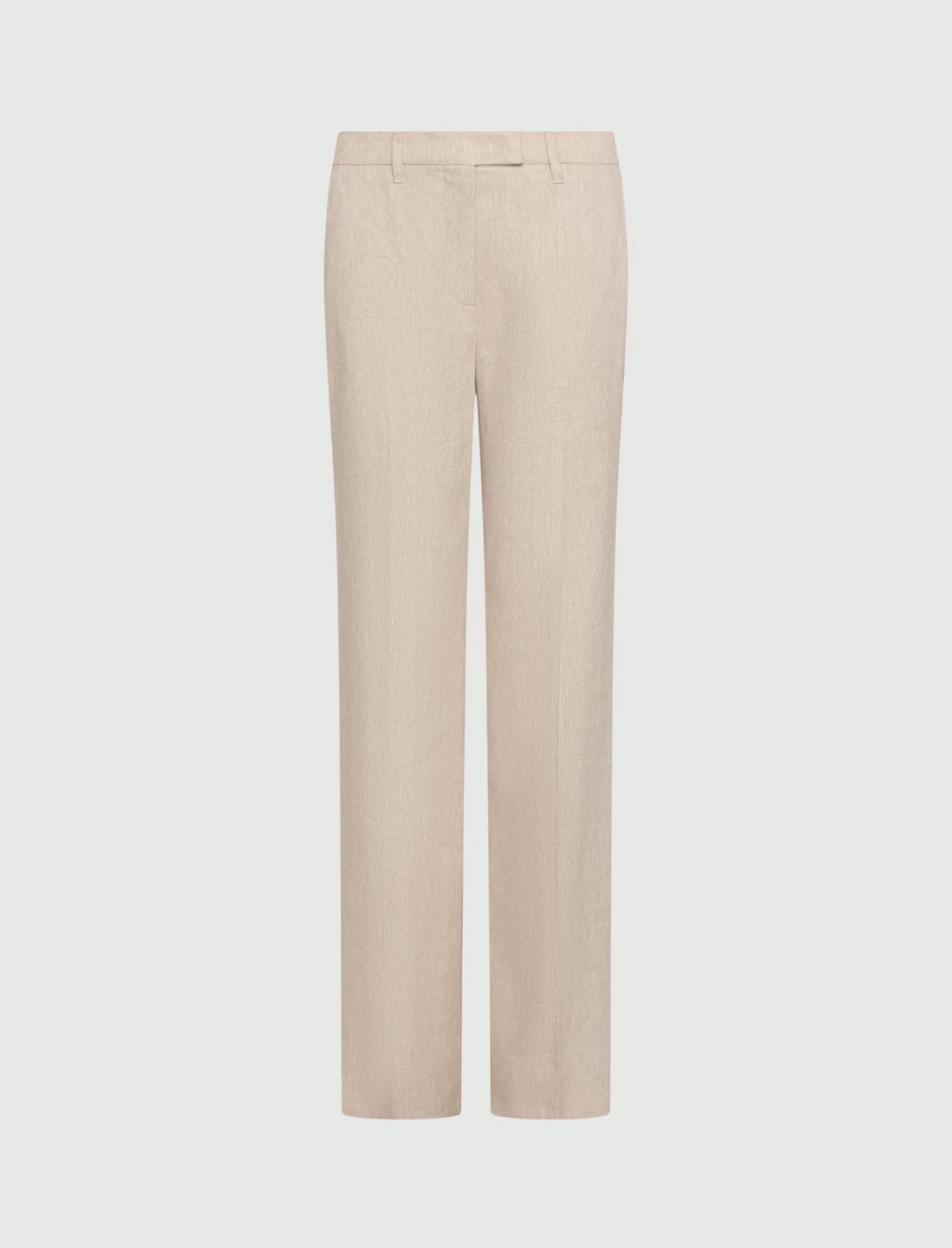 - Trousers in herringbone-patterned malfilé-look stretch linen and viscose fabric