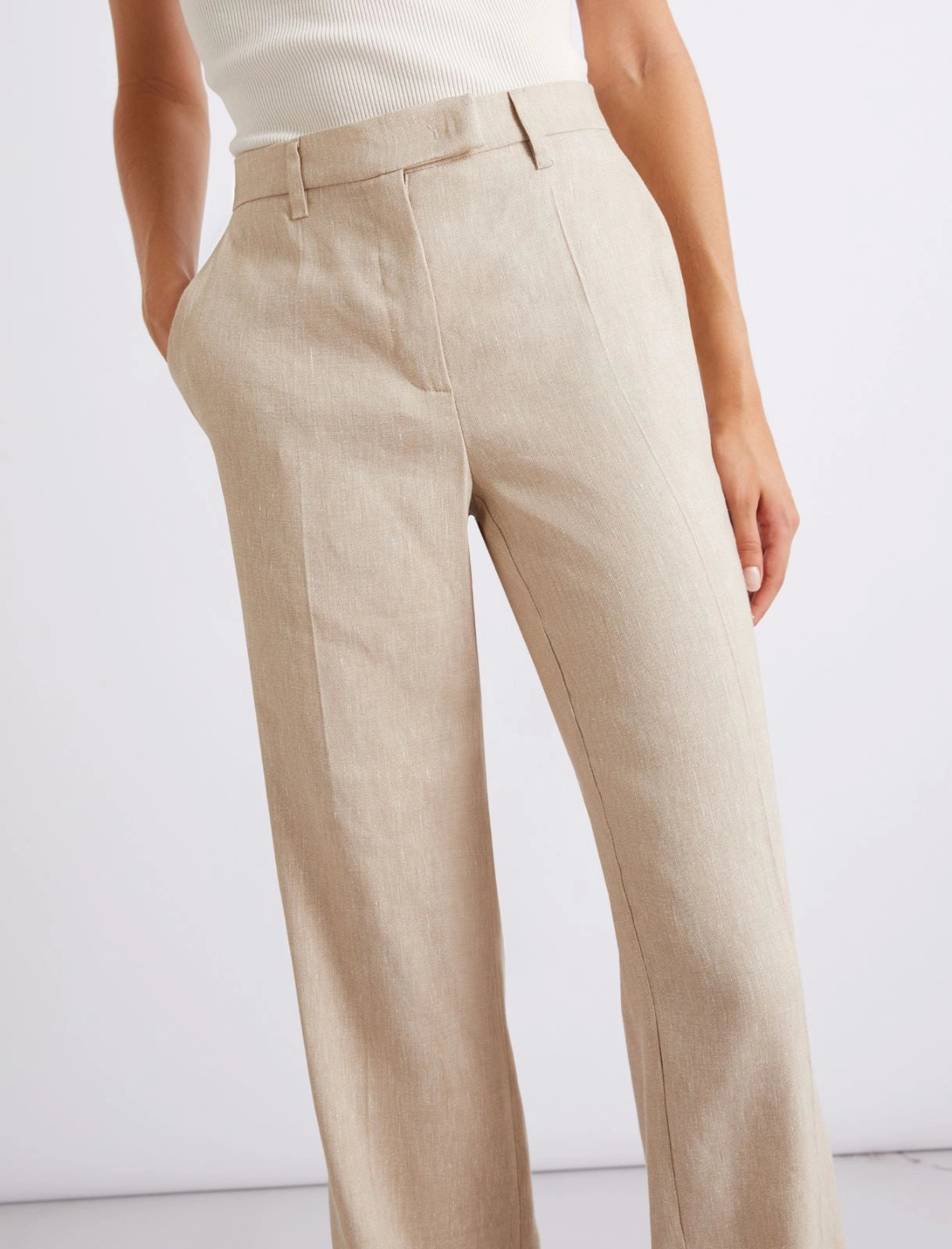 Cool linen, fluid viscose and a textured herringbone pattern: introducing the season's most sophisticated trousers. The piece pairs perfectly with the matching blazer and goes well with virtuous combinations, such as billowing shirts or minimalist tops.