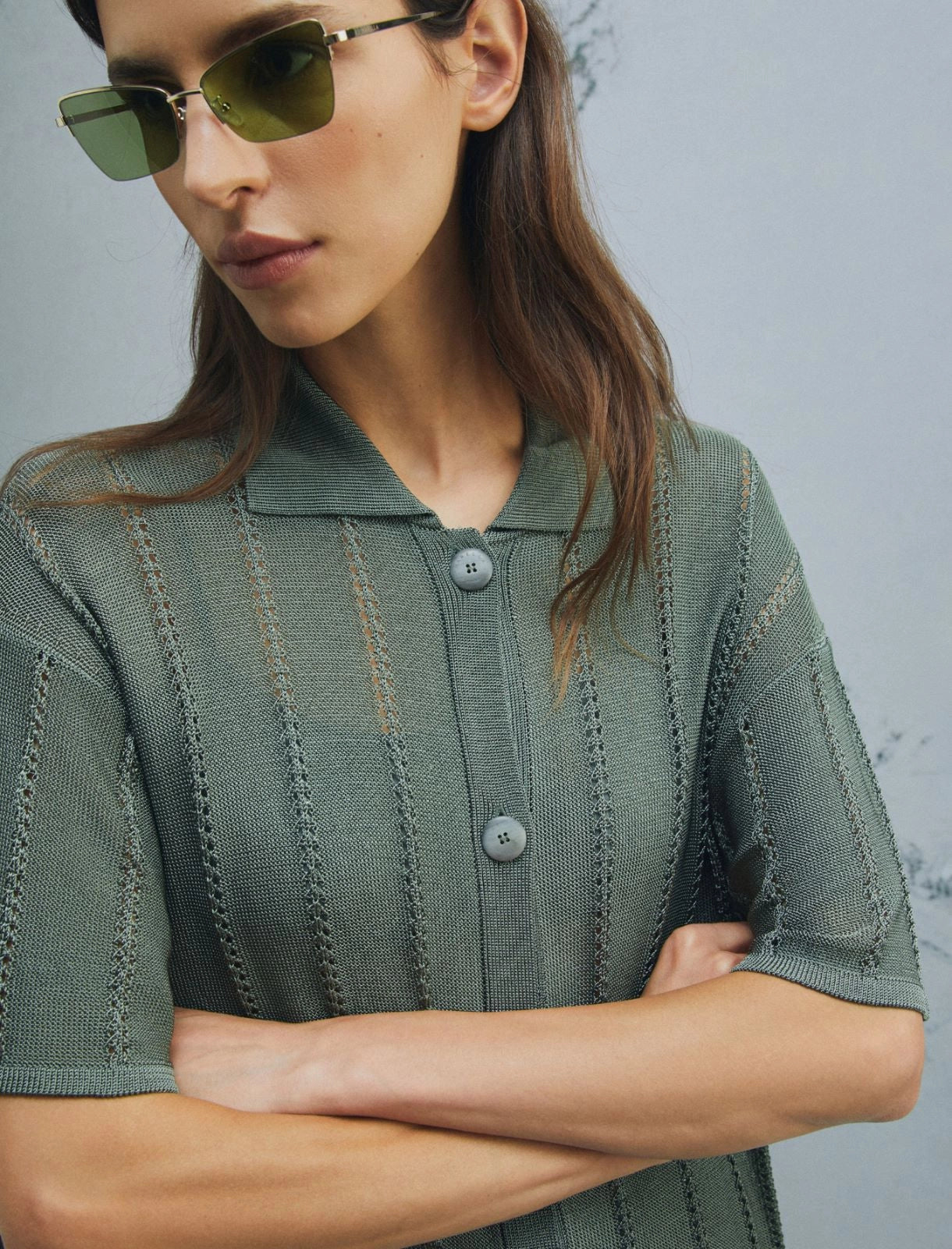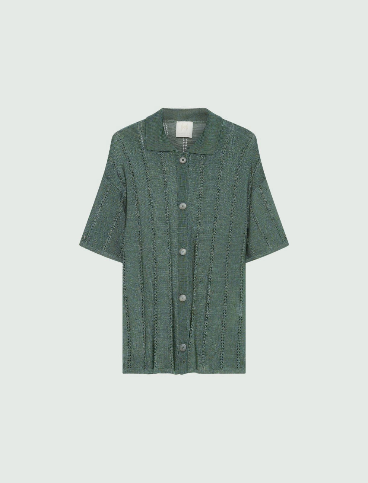- Shirt collar with a visible button fastening and short sleeves