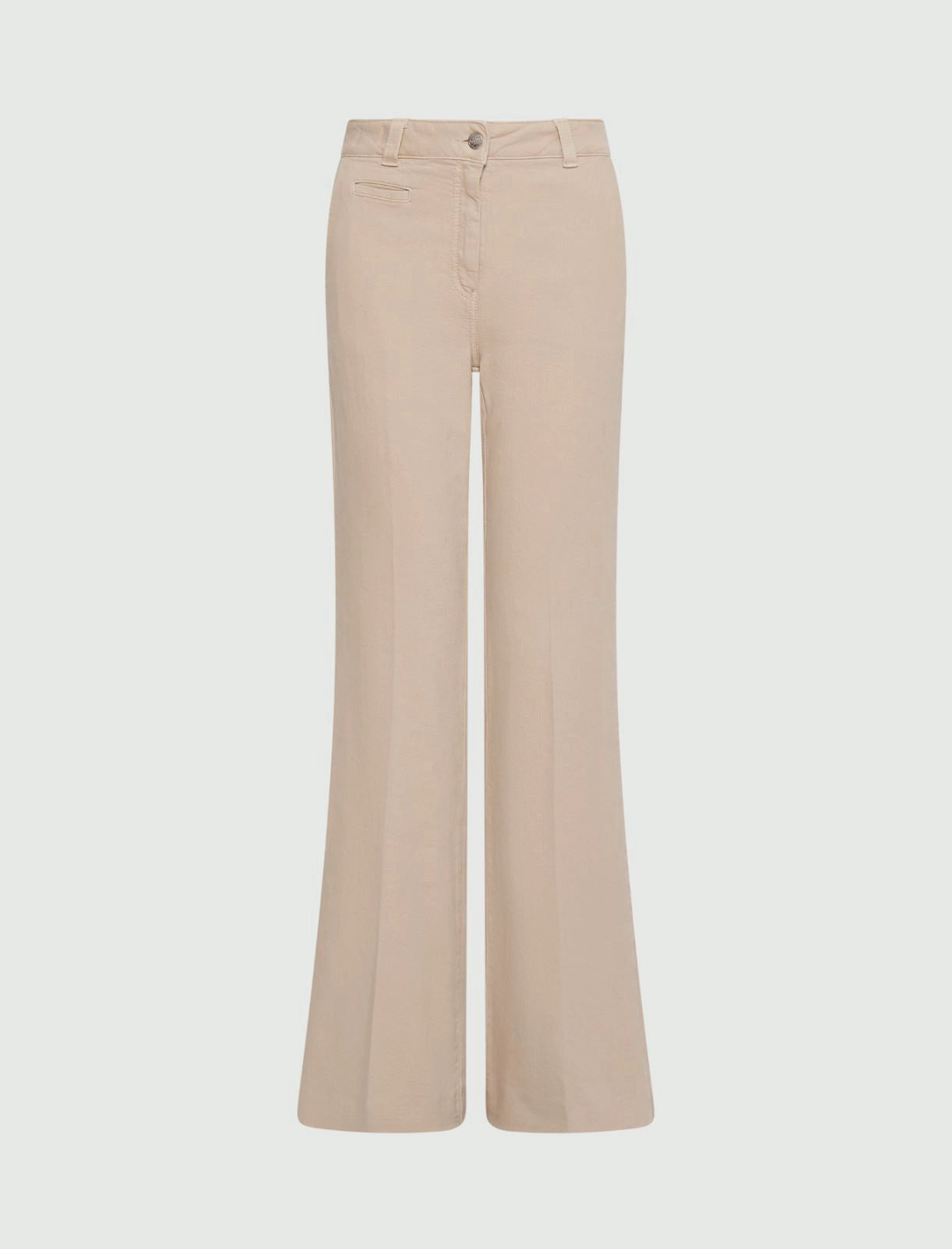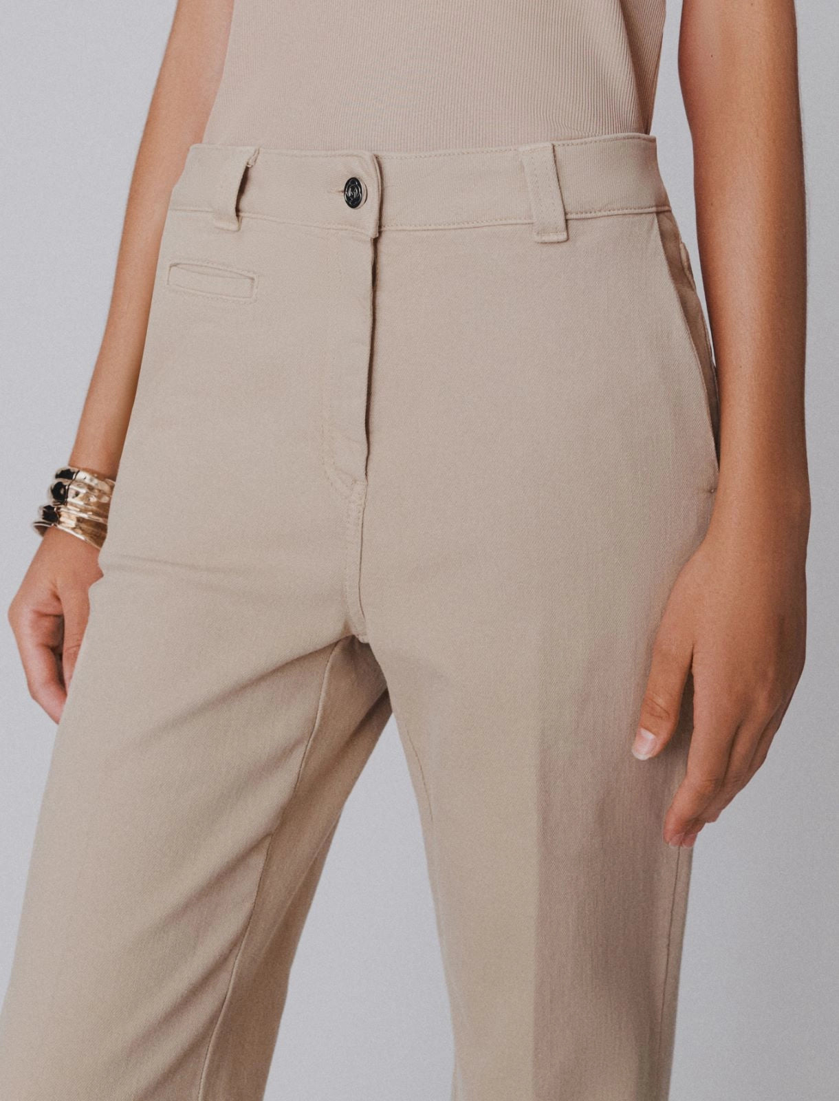 - High waist and a branded metal button fastening