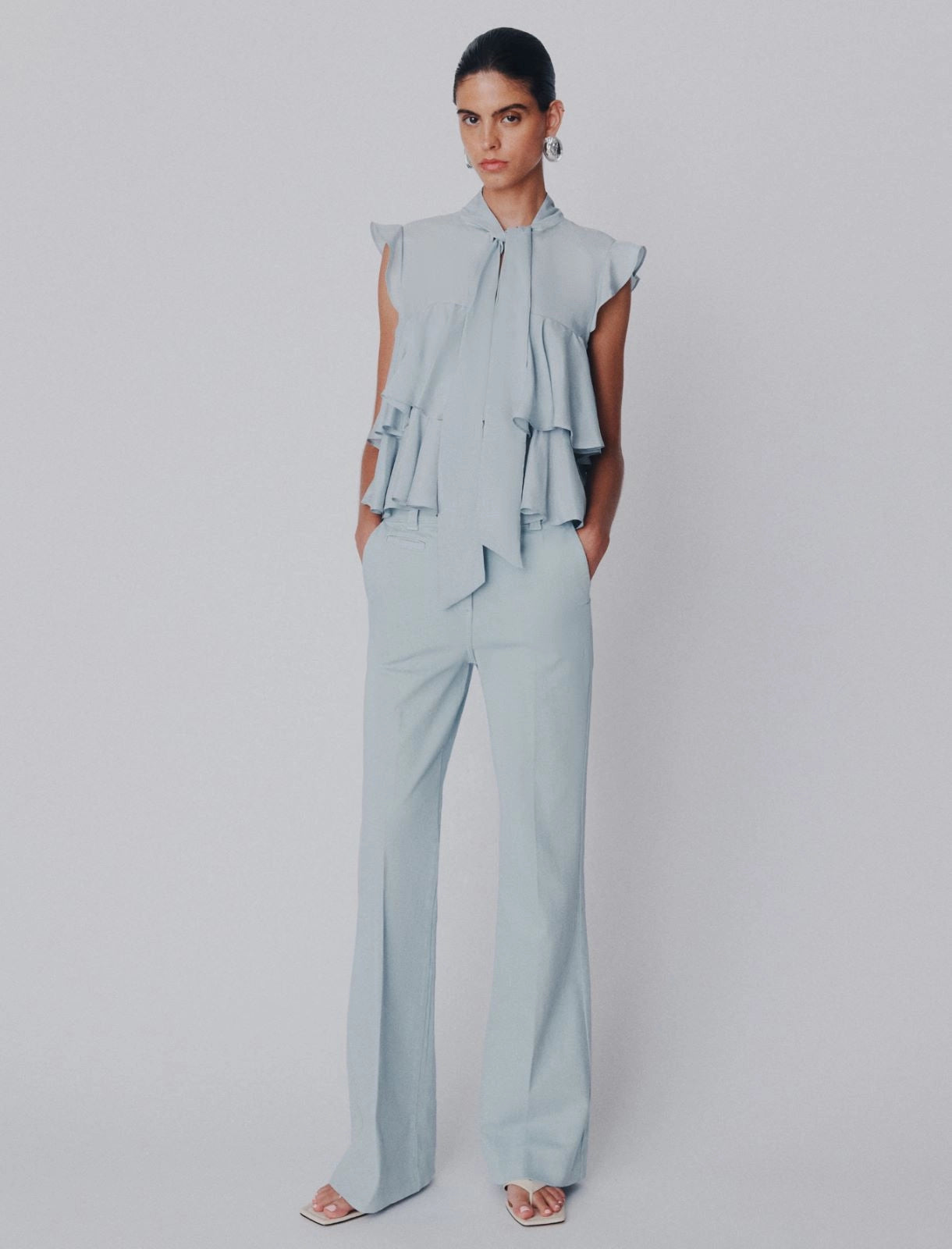Stretch cotton wide-leg trousers