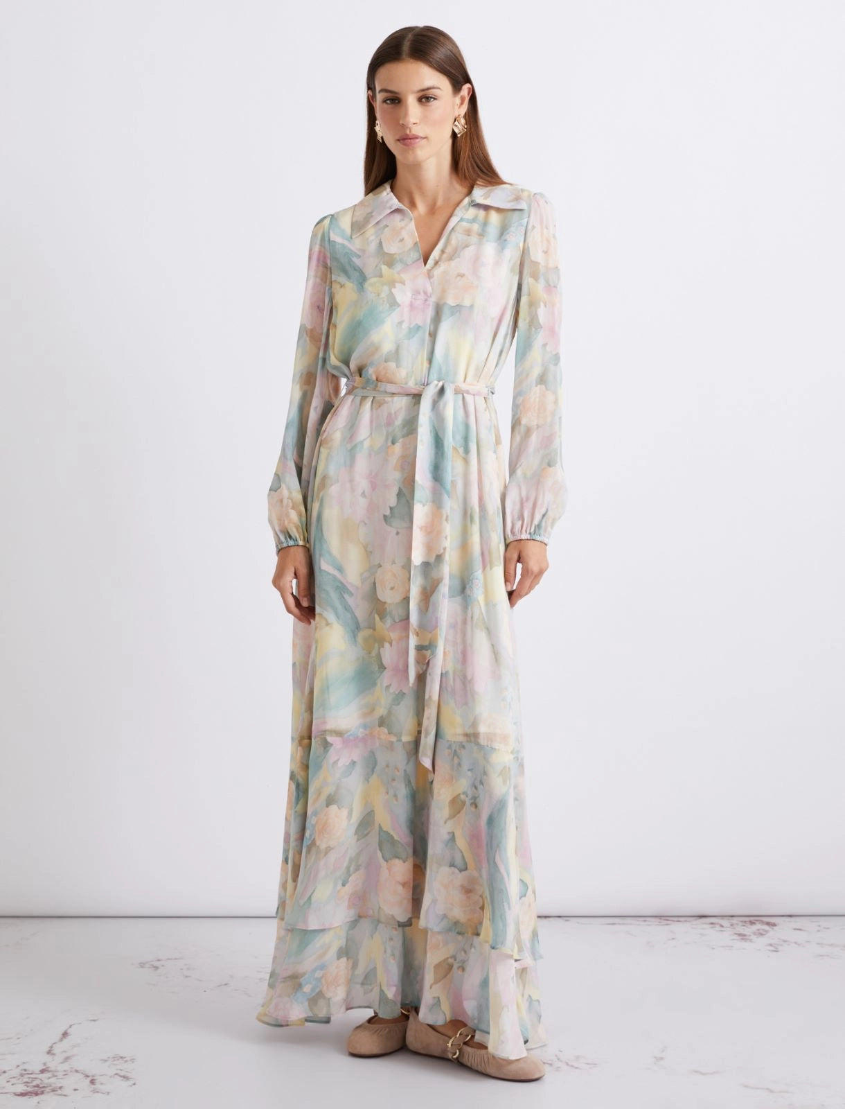 Long printed georgette dress