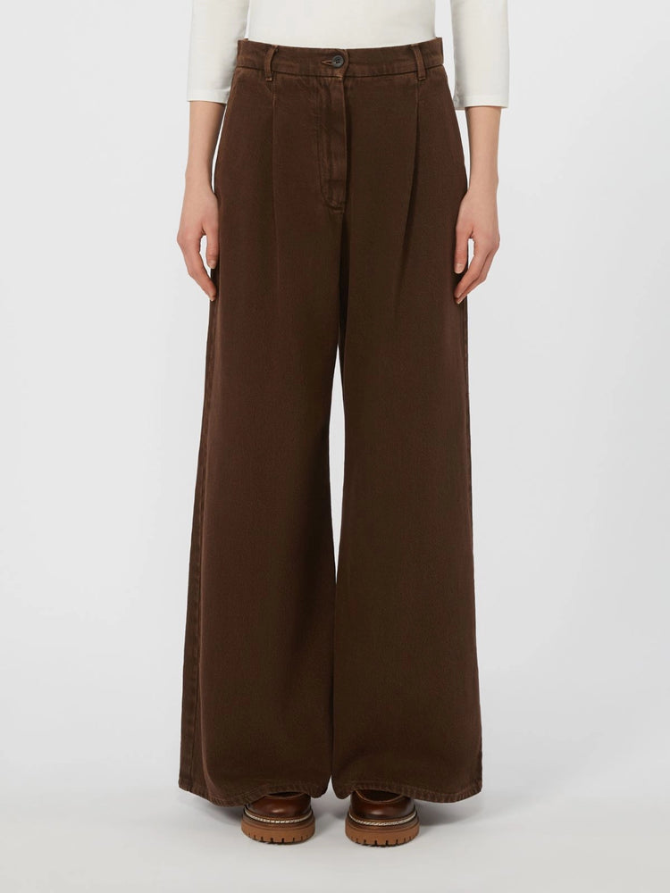 | Cut in garment-dyed bull cotton with recycled fibre content and pleated front design, these NANDA trousers offer structured volume and tailoring ease—concealed fastening, pocket detailing and wide cut make them a standout piece for relaxed polish |
