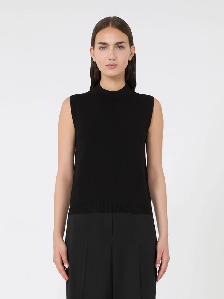 Cut in a stretch viscose blend, this NAZIONE top offers feather-light comfort with breathable fluidity—rib-knit raised neck and clean hem line accent the silhouette, making it an effortlessly elegant foundational layer