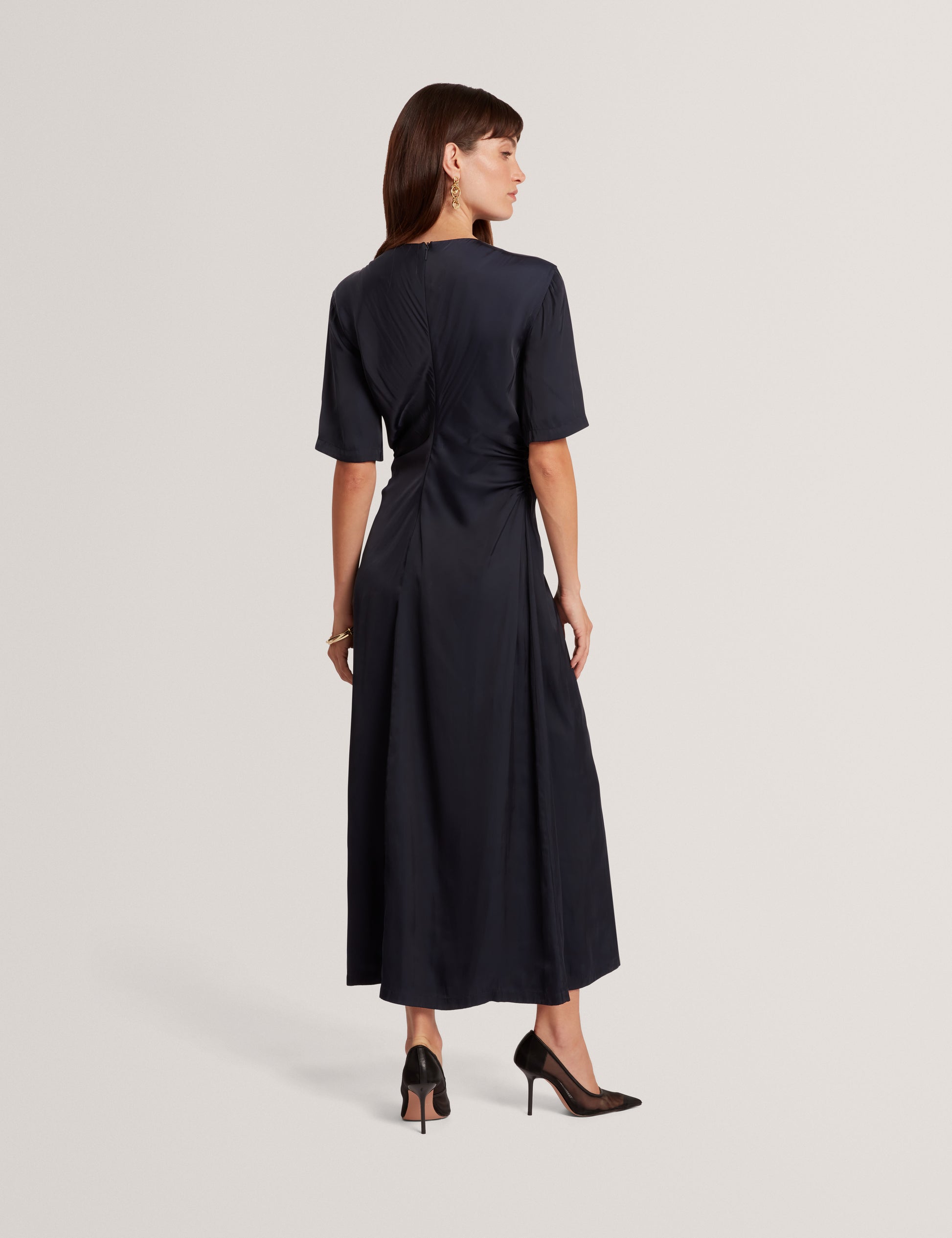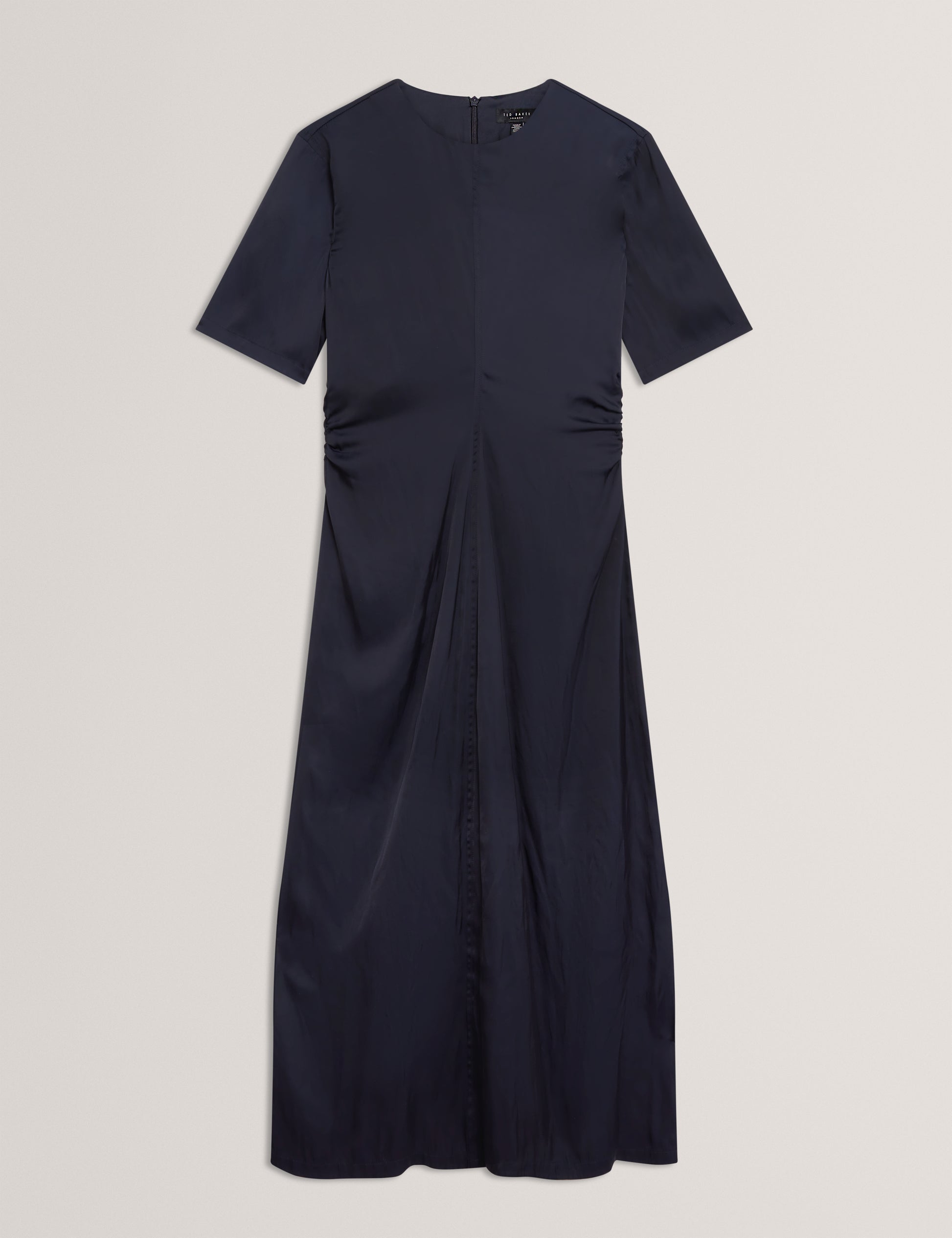 PLUMMA - Short Sleeve Gathered Waist Midi Dress