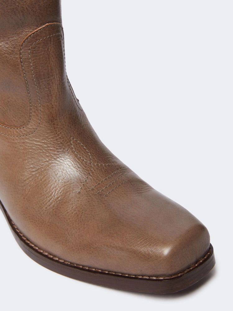 | Crafted in vegetable-tanned leather with a barrel-dyed finish, these RANCH boots combine heritage western motifs, structured 4 cm heel and leather lining for refined comfort—side loops ensure easy wear while the square toe and high shaft give bold, timeless character |
