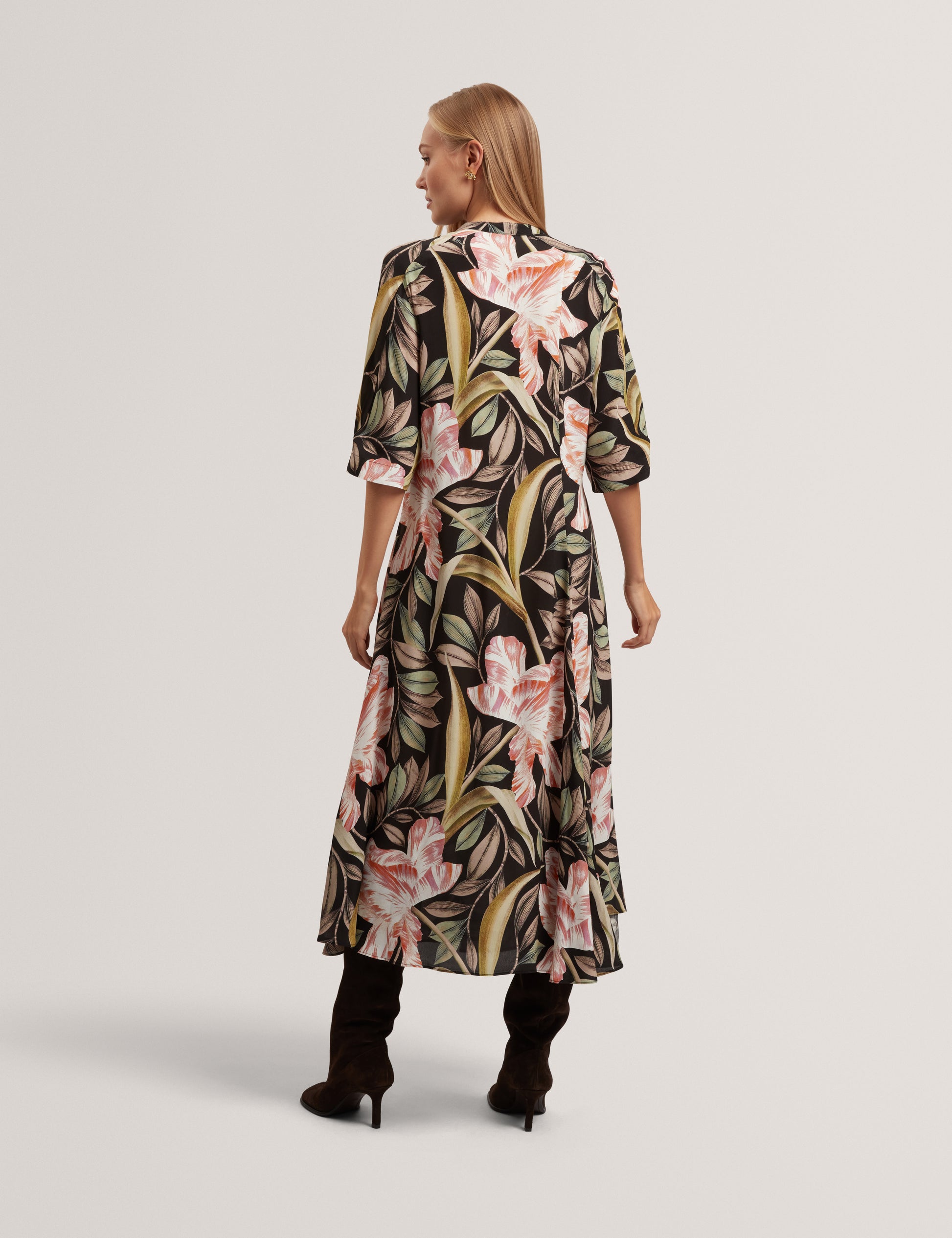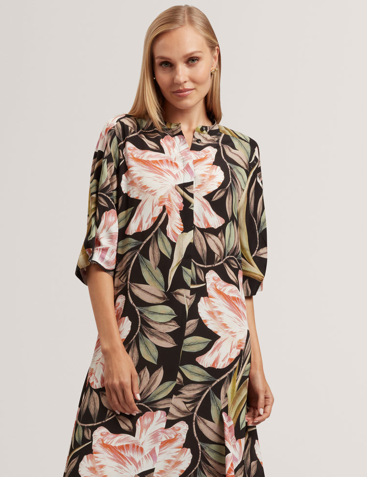 Printed Short Sleeve Midi Dress
