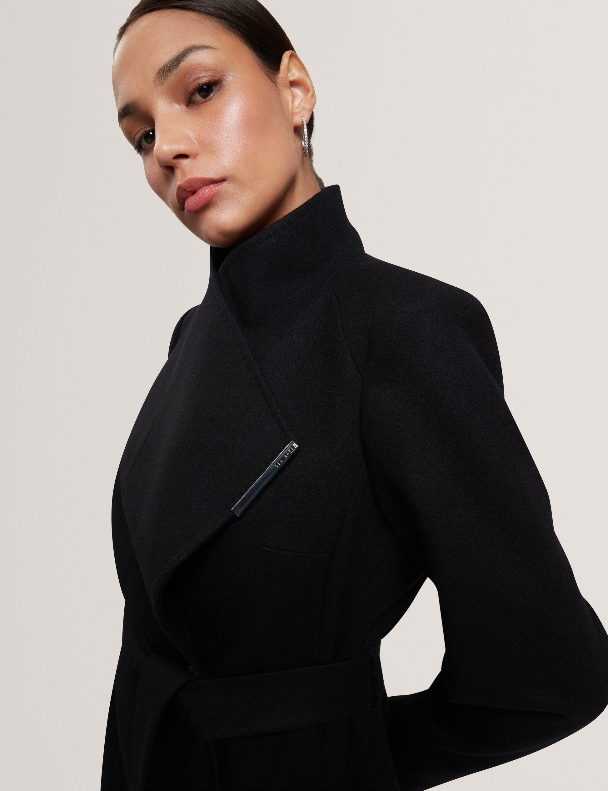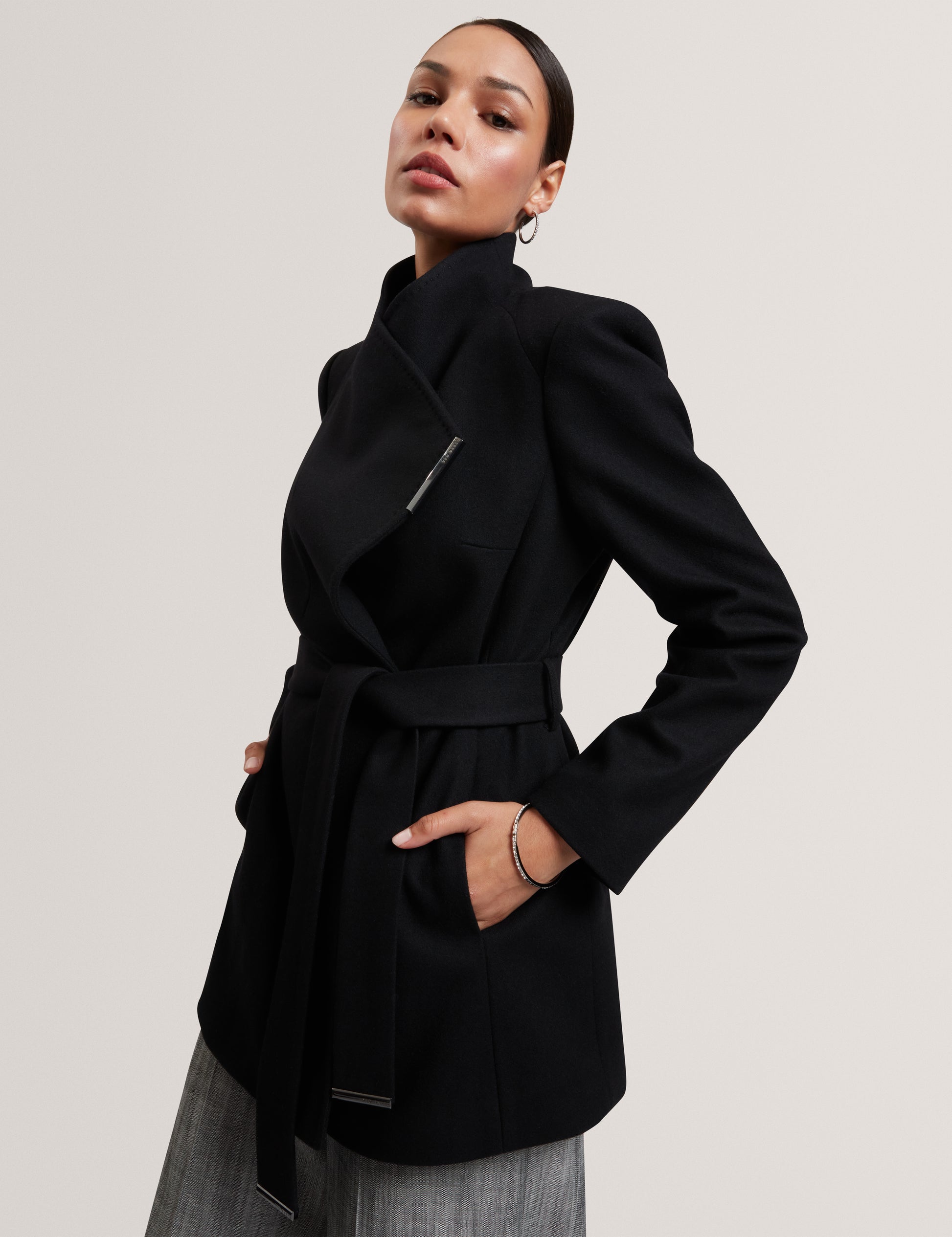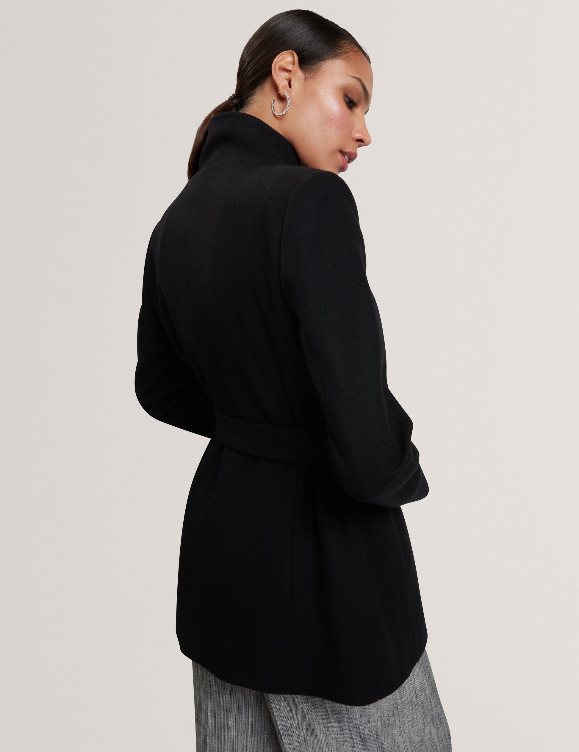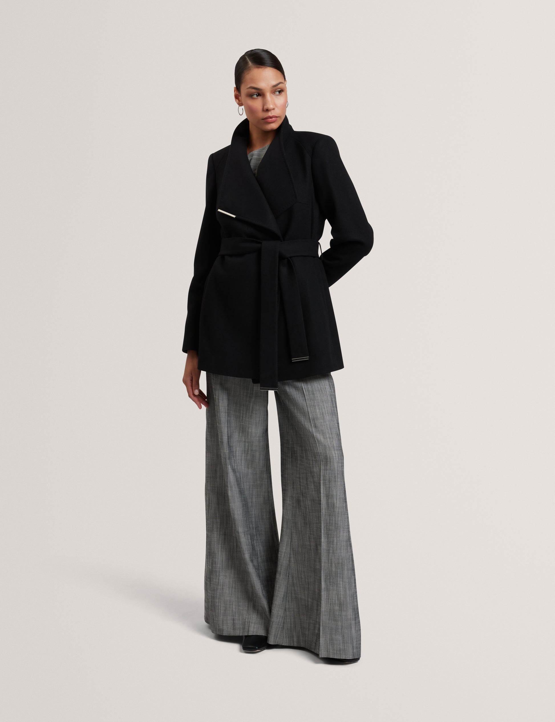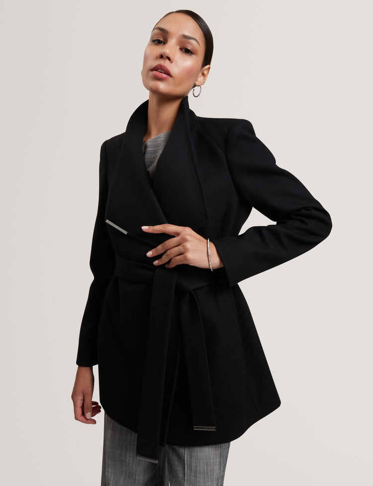 Short Belted Wool Wrap Coat