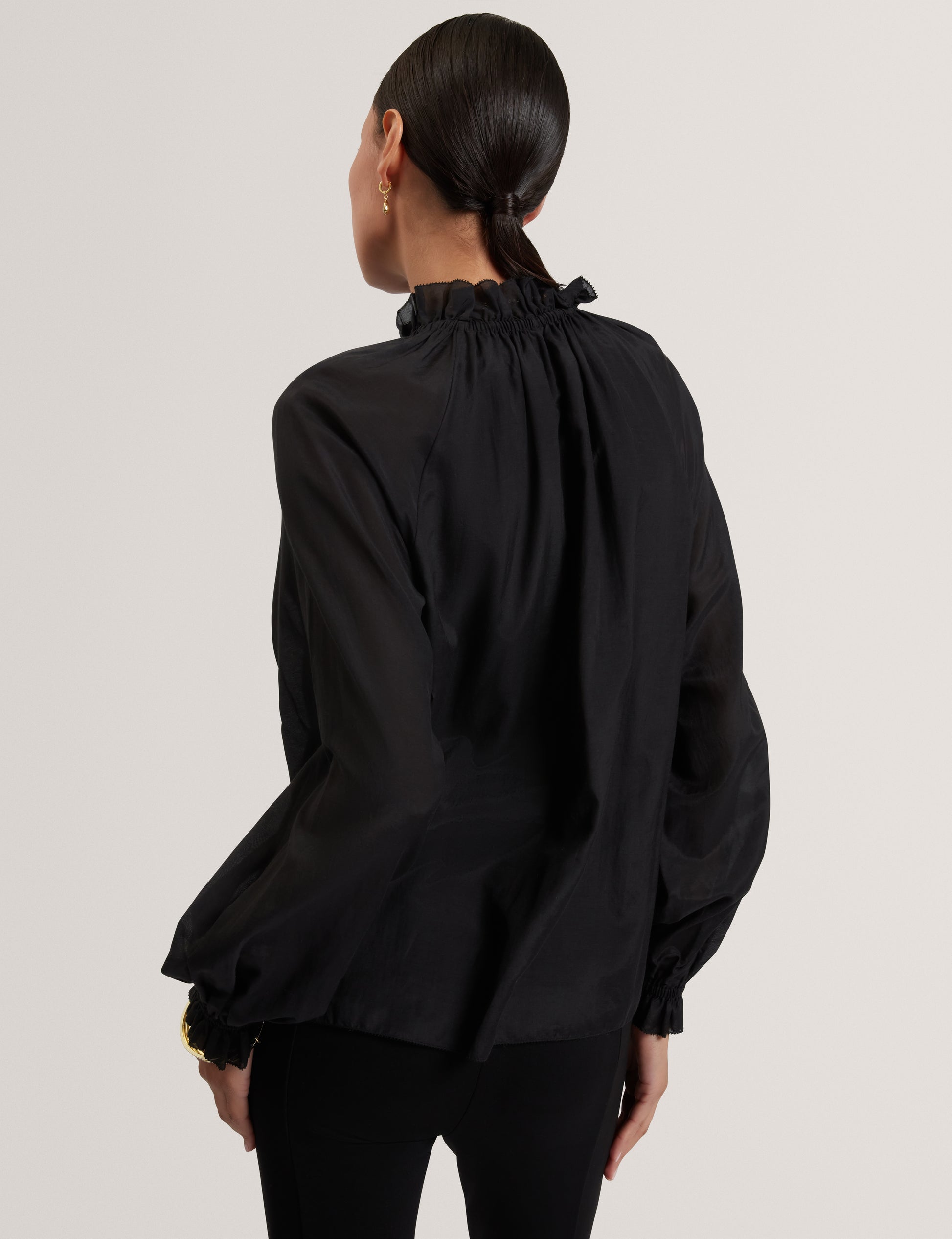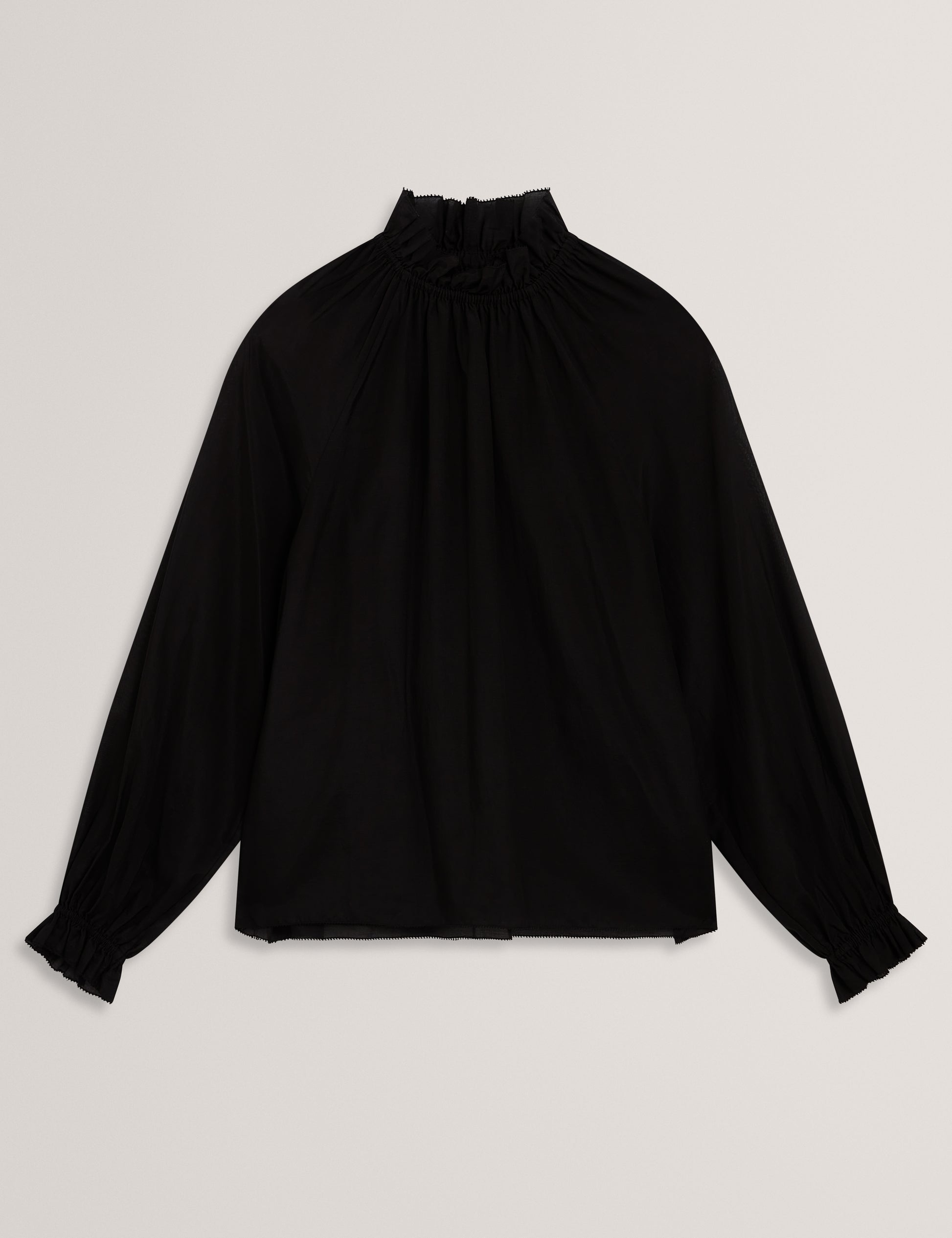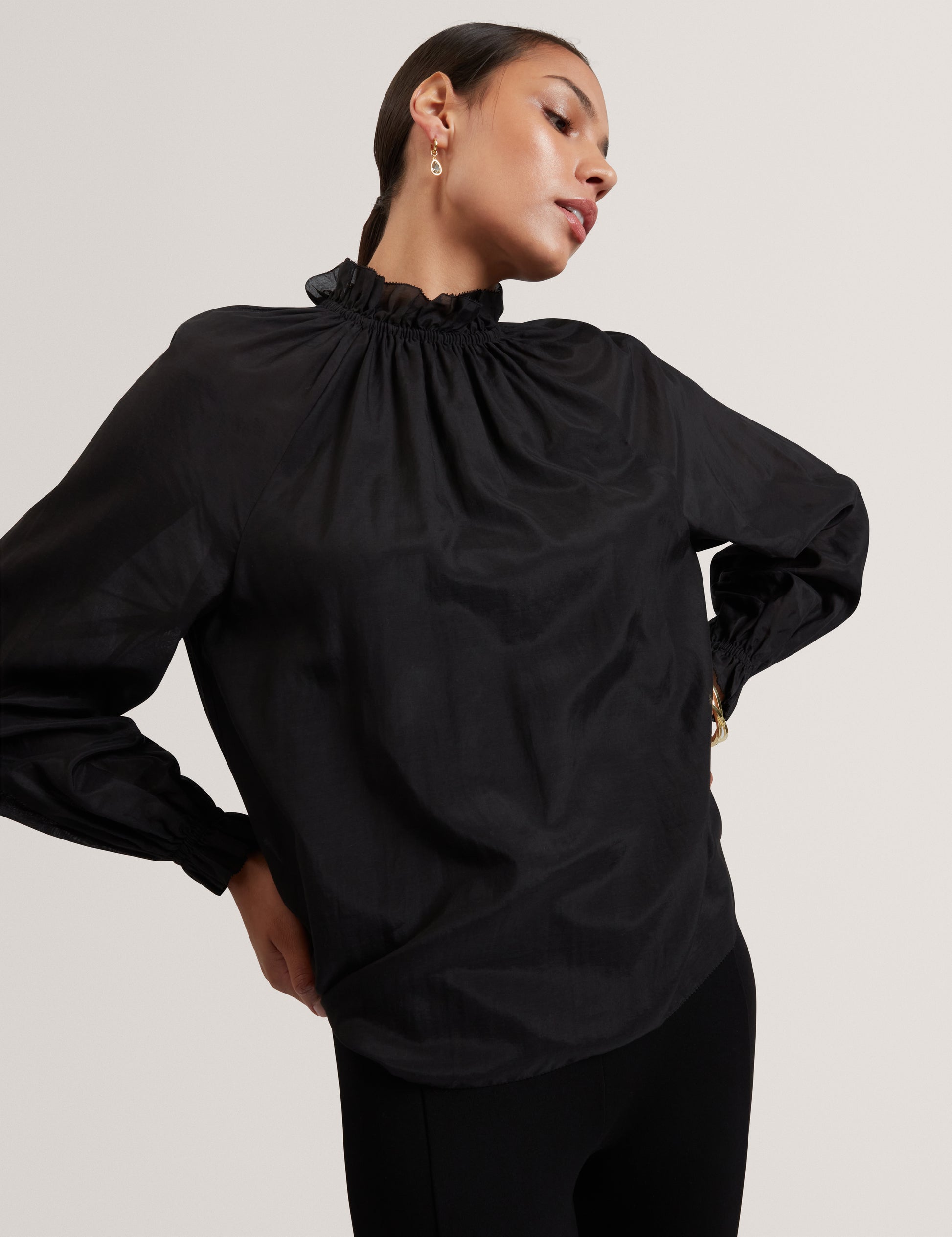 Gathered Neck Long Sleeve Blouse