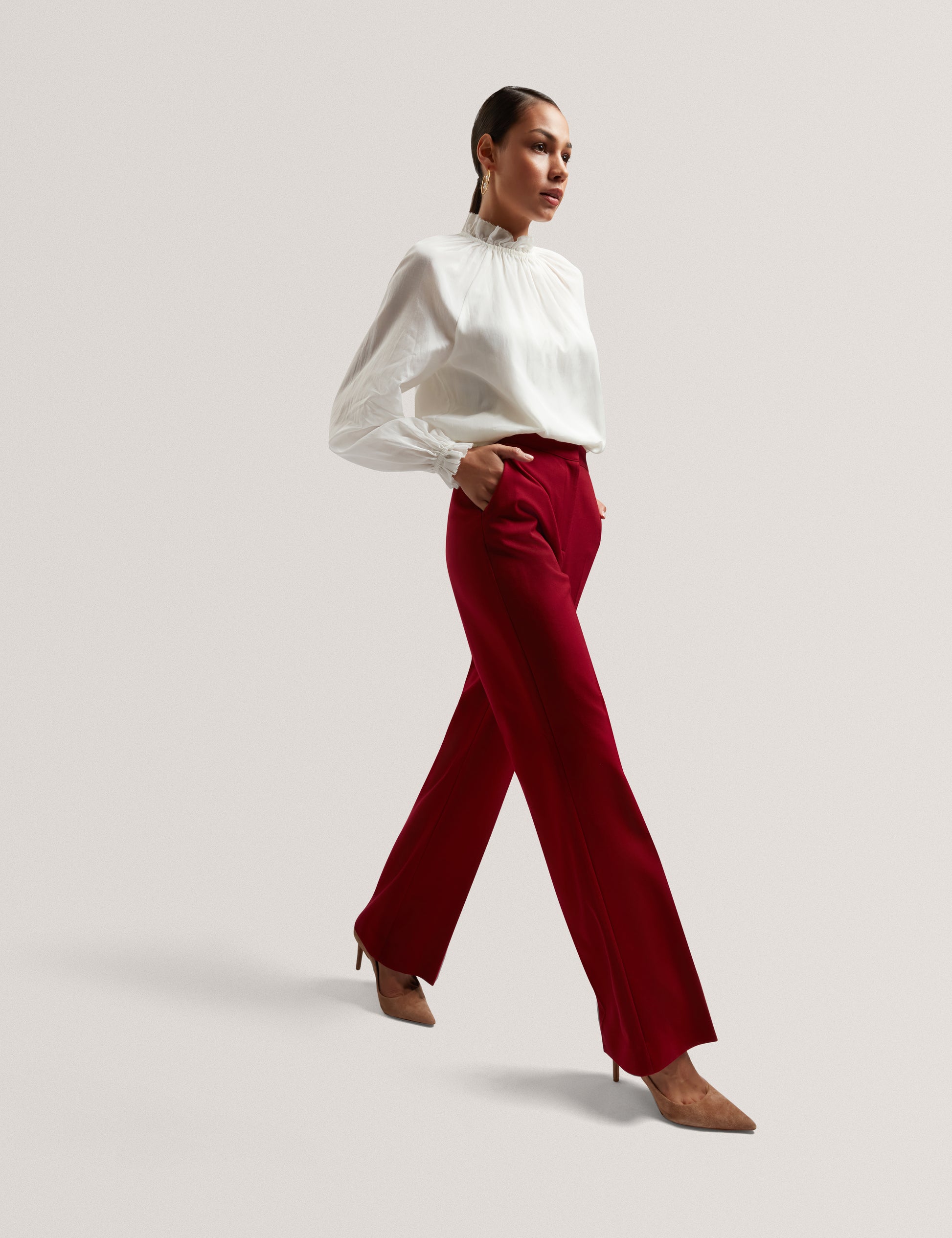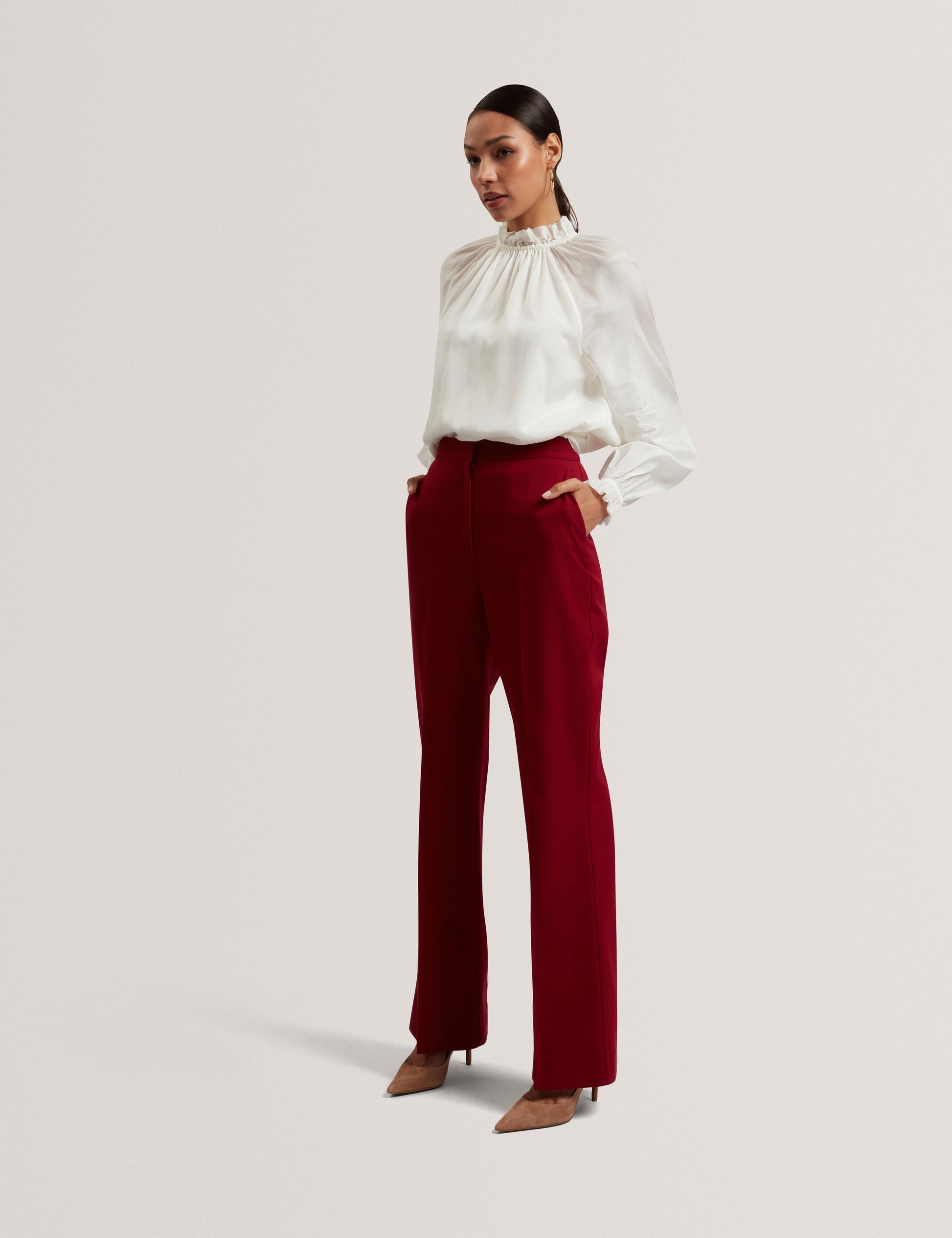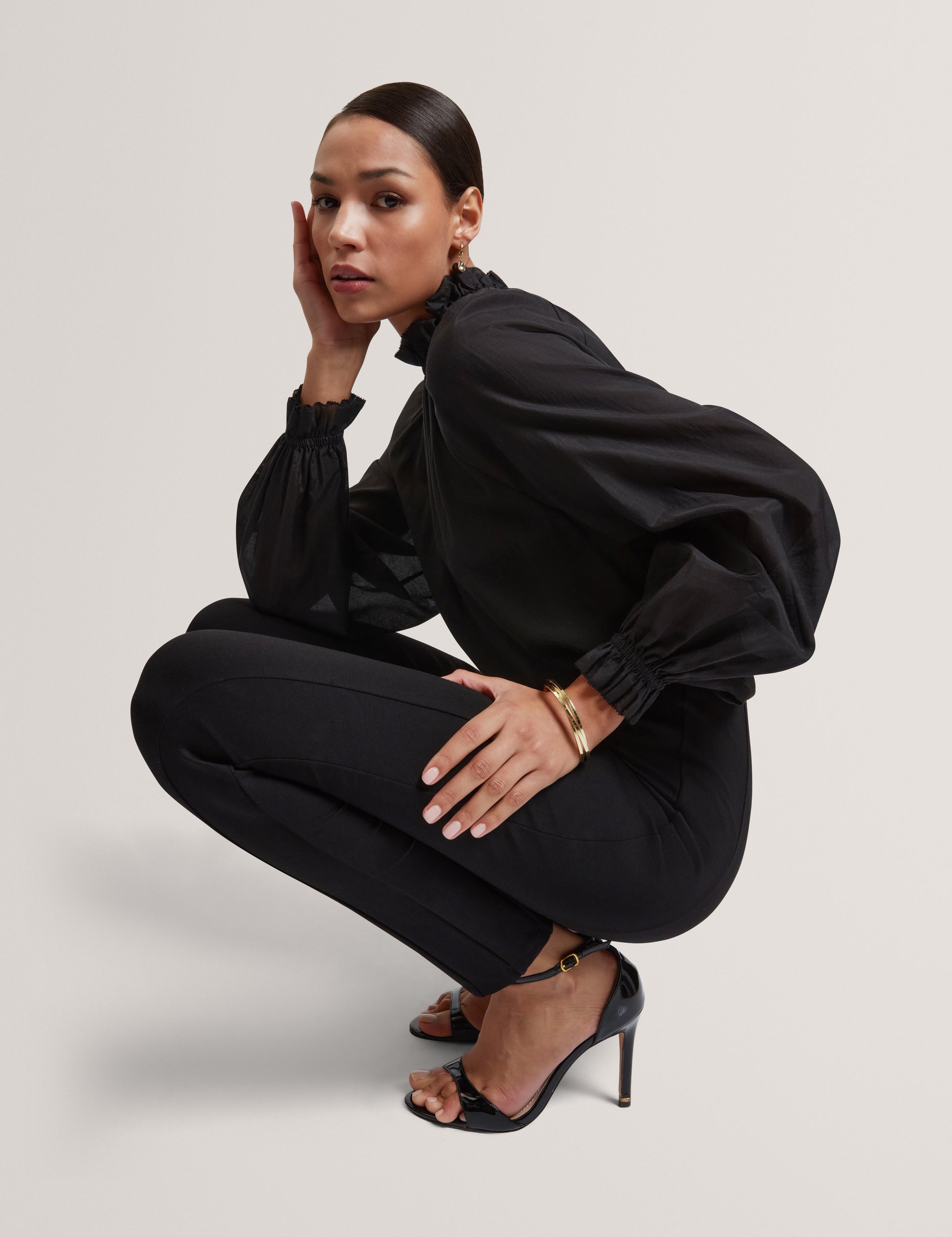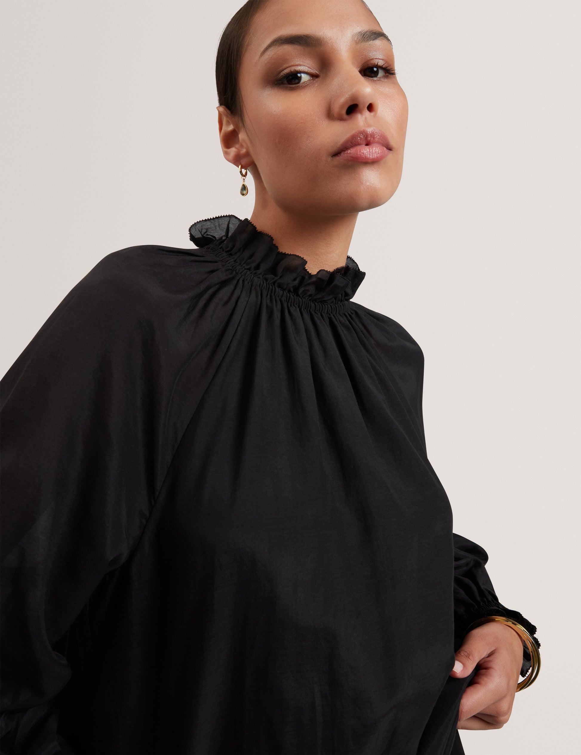 Gathered Neck Long Sleeve Blouse