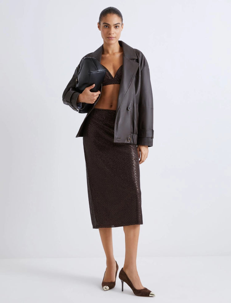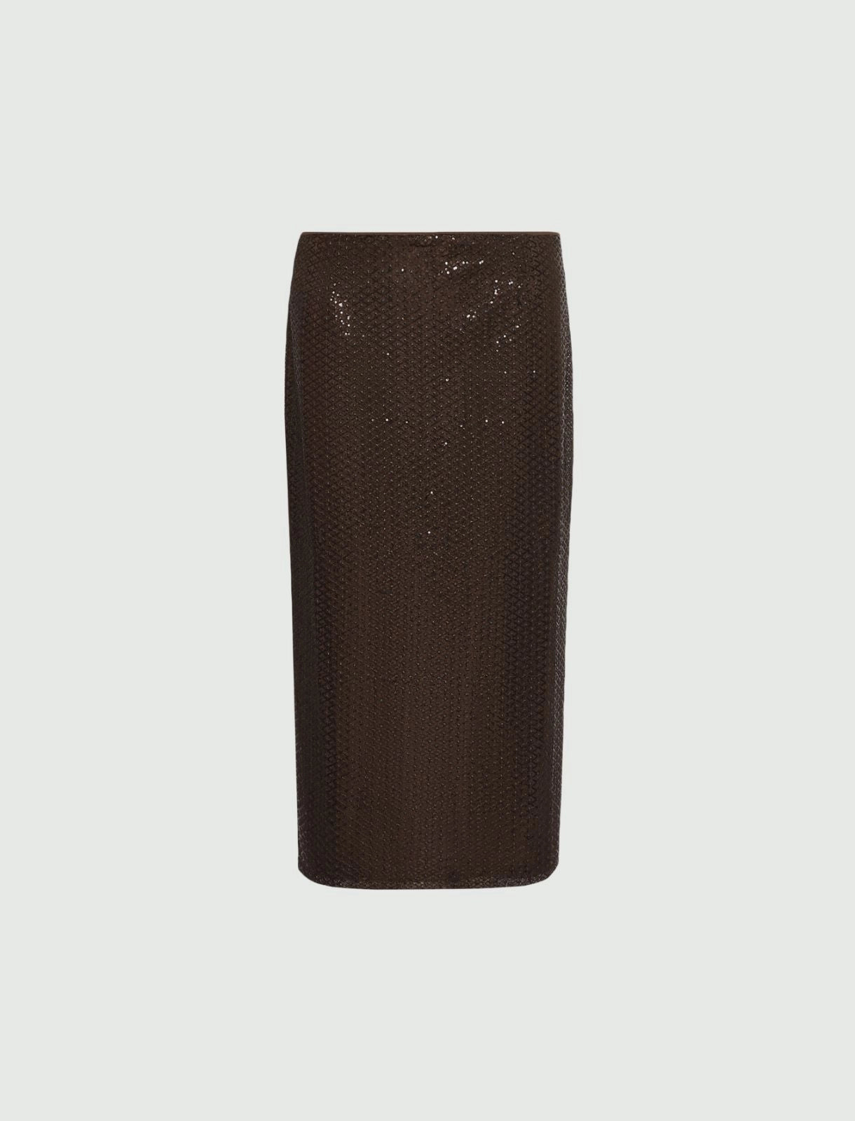 A glamorous take on the classic calf-length skirt with a straight fit and clean-cut waist for a more current look. The all-over sequin-embroidered detail creates a shiny effect, to be worn day to night.