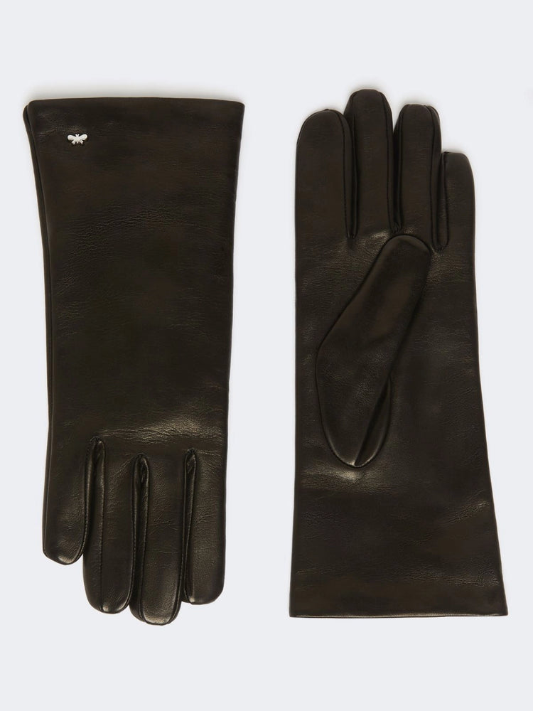 | Crafted in supple lambskin Nappa leather with a wool lining, the Senape Short gloves feature a sleek silhouette and subtle butterfly metal logo at the wrist—designed to deliver elegance, warmth, and refined statement style |