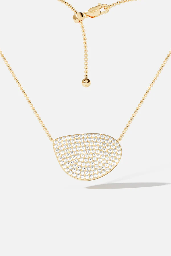 | Inspired by the coastline of the Mediterranean Sea, this necklace embodies the essence of this beautiful landscape with a soft and organic feel. All our products are handcrafted in our ateliers Material: APM Alloy made of 95% recycled material and 18k yellow gold plated, anti-tarnishing and hypoallergenic Stone: White cubic zirconia Color: Yellow Gold Pendant size: Length 2.5 cm ; Width 1.8 cm Total chain length: Adjustable to 48 cm max with sliding clasp |