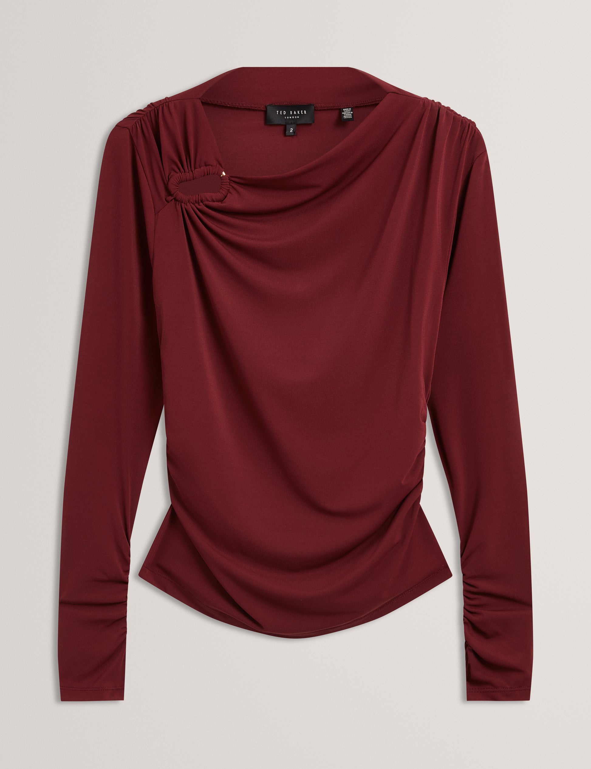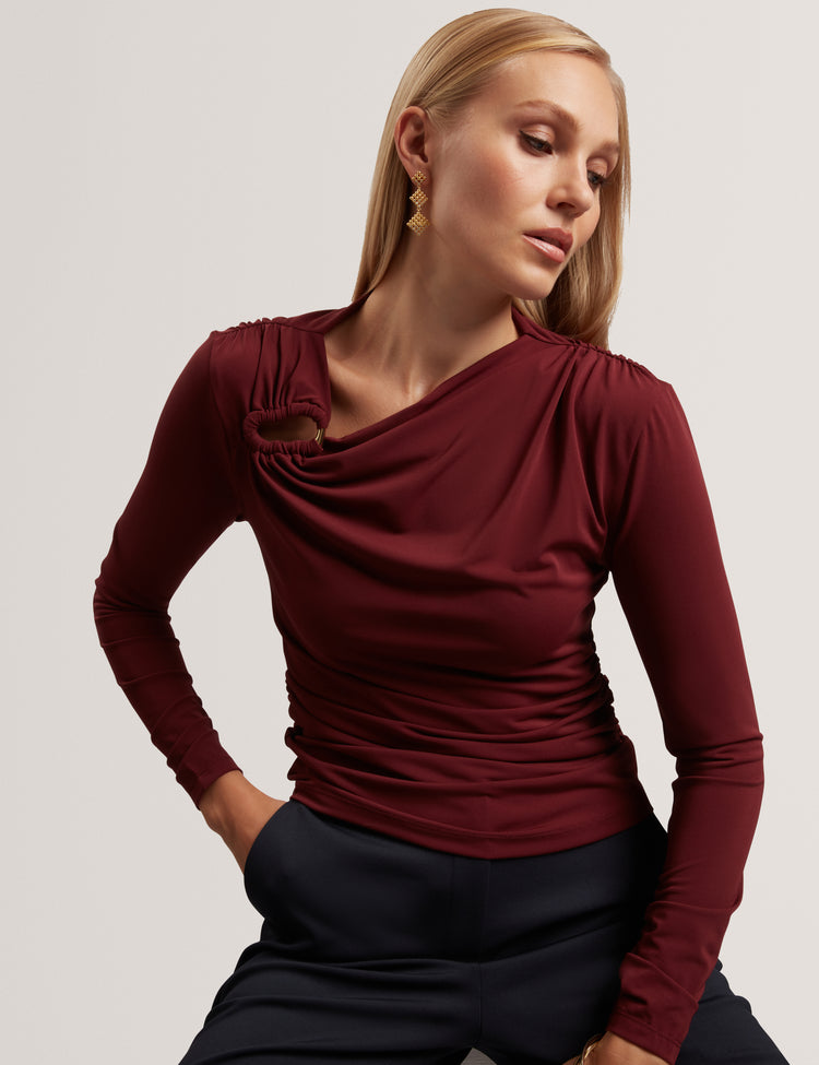 Long Sleeve Ruched Top With Metal Detail