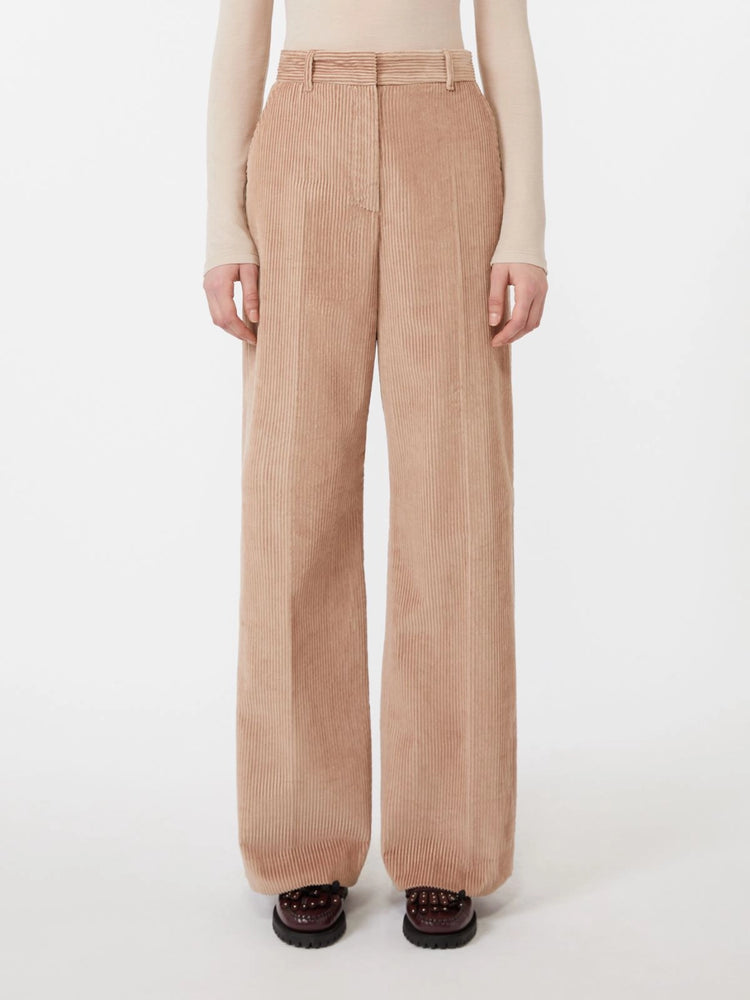 | Cut in rich cotton velvet, these TANIA trousers marry plush texture with structured tailoring — wide waistband tab, slanted pockets and clean crease add elevated ease to comfort |