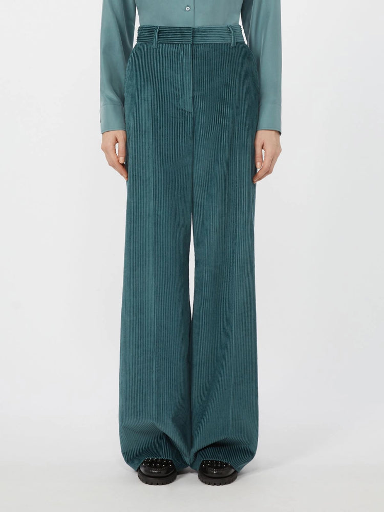 Cut in rich cotton velvet, these TANIA trousers marry plush texture with structured tailoring — wide waistband tab, slanted pockets and clean crease add elevated ease to comfort
