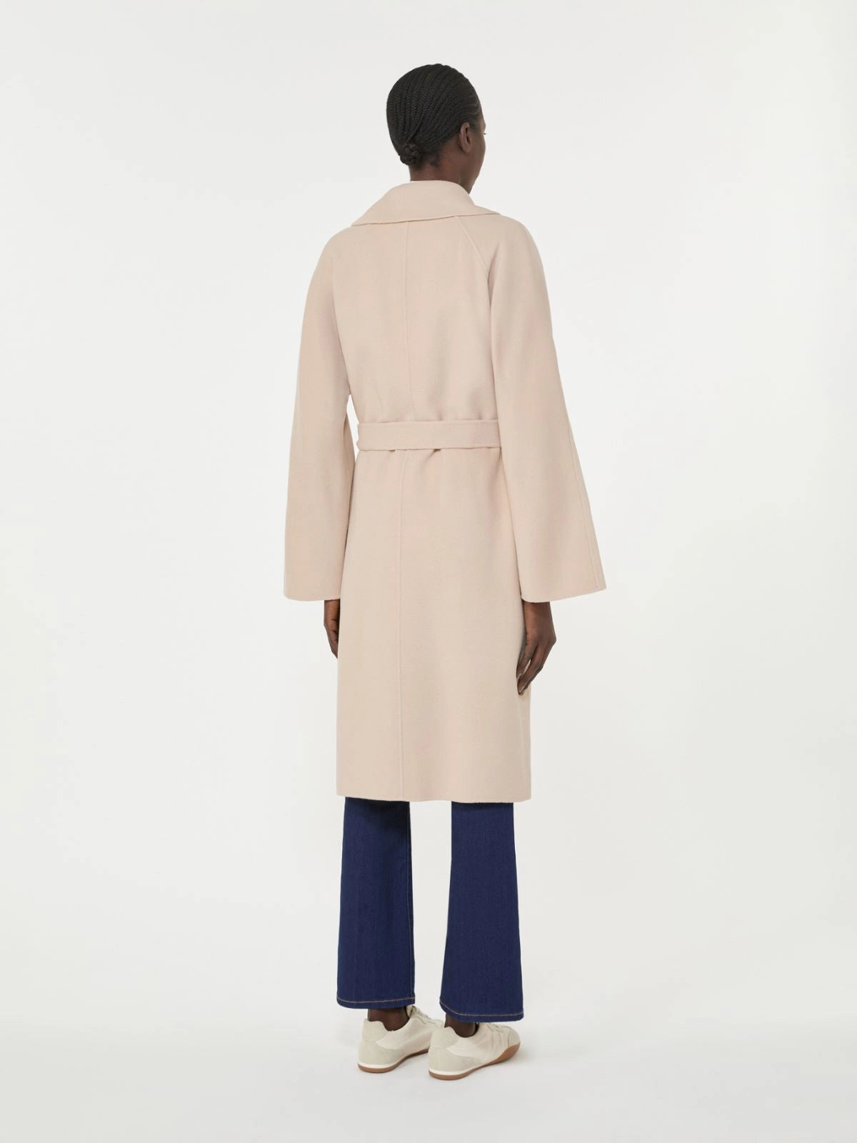 - Coat in hand-sewn double-faced wool-blend fabric