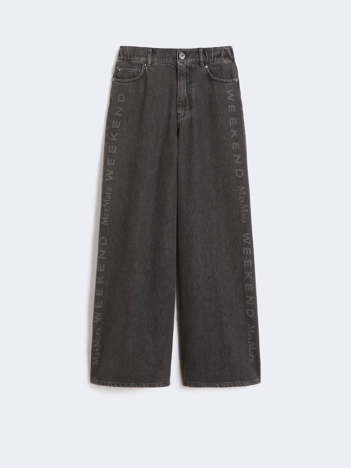 5-pocket jeans customized with a laser-cut maxi logo print.