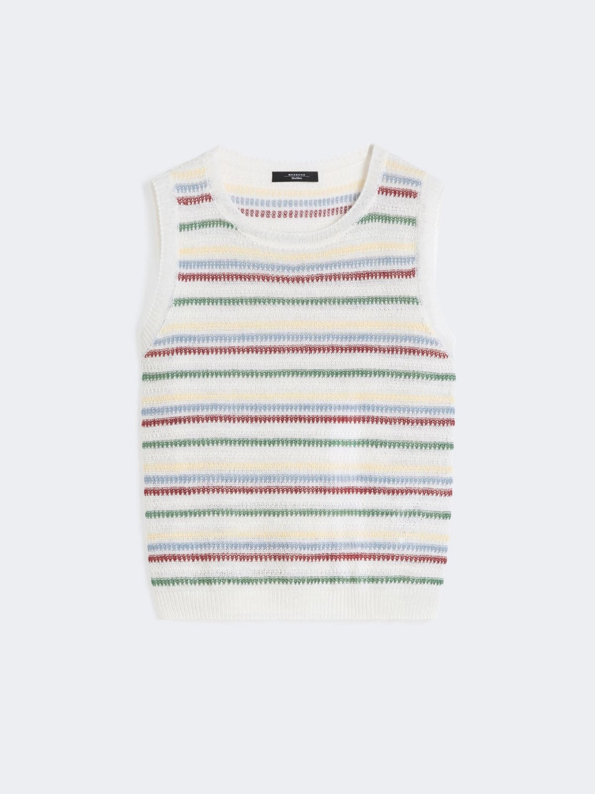Sleeveless waistcoat with a relaxed fit and a wavy texture, worked in a braided stitch.